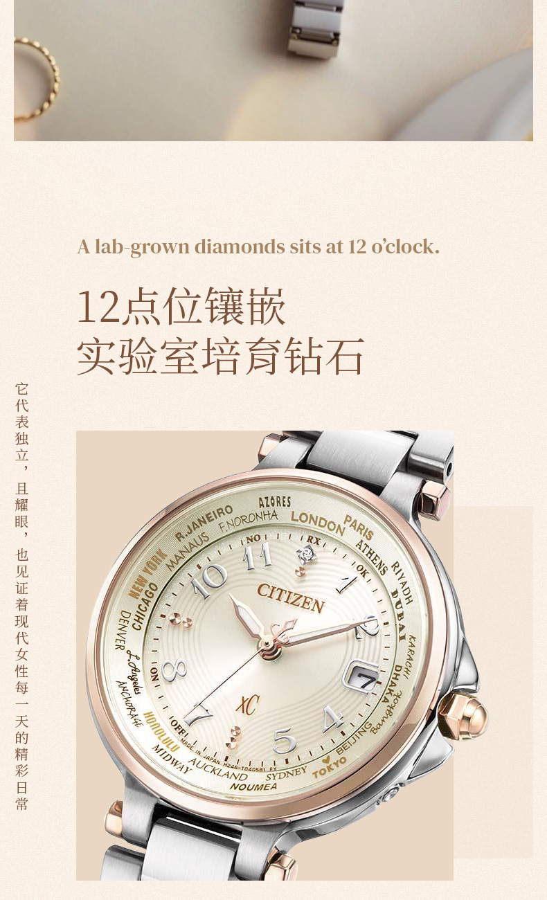 西铁城/CITIZEN小铃花贝母盘光动能花语风吟钢带时尚女表EM1060-87N