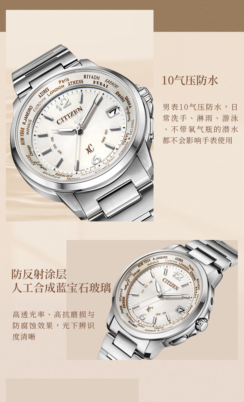 西铁城光动能万年历电波对时男表官方正品防水休闲款CB0150-62L