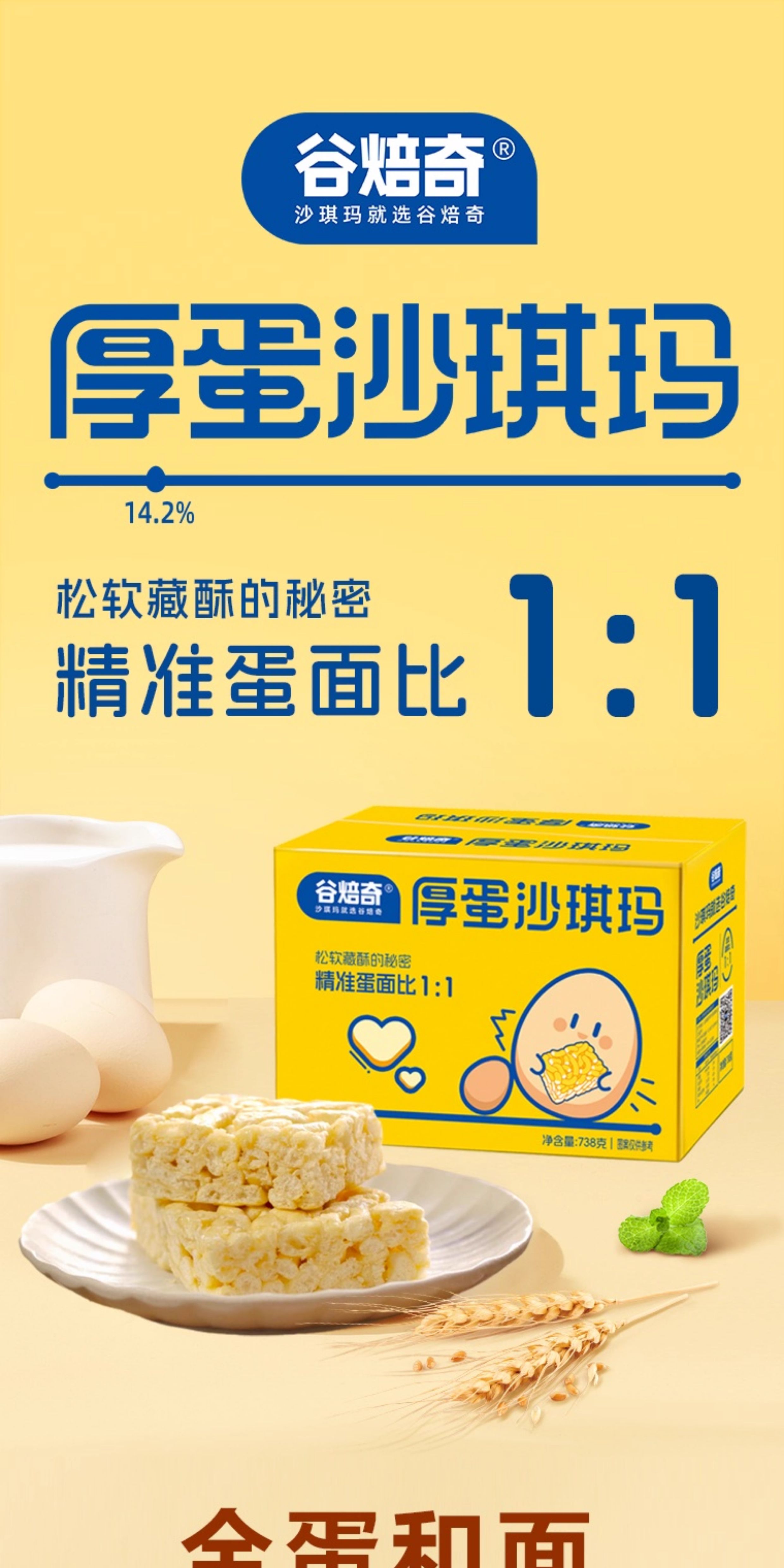 谷焙奇鸡蛋沙琪玛箱装芝麻传统糕点心738g/箱(约20个)
