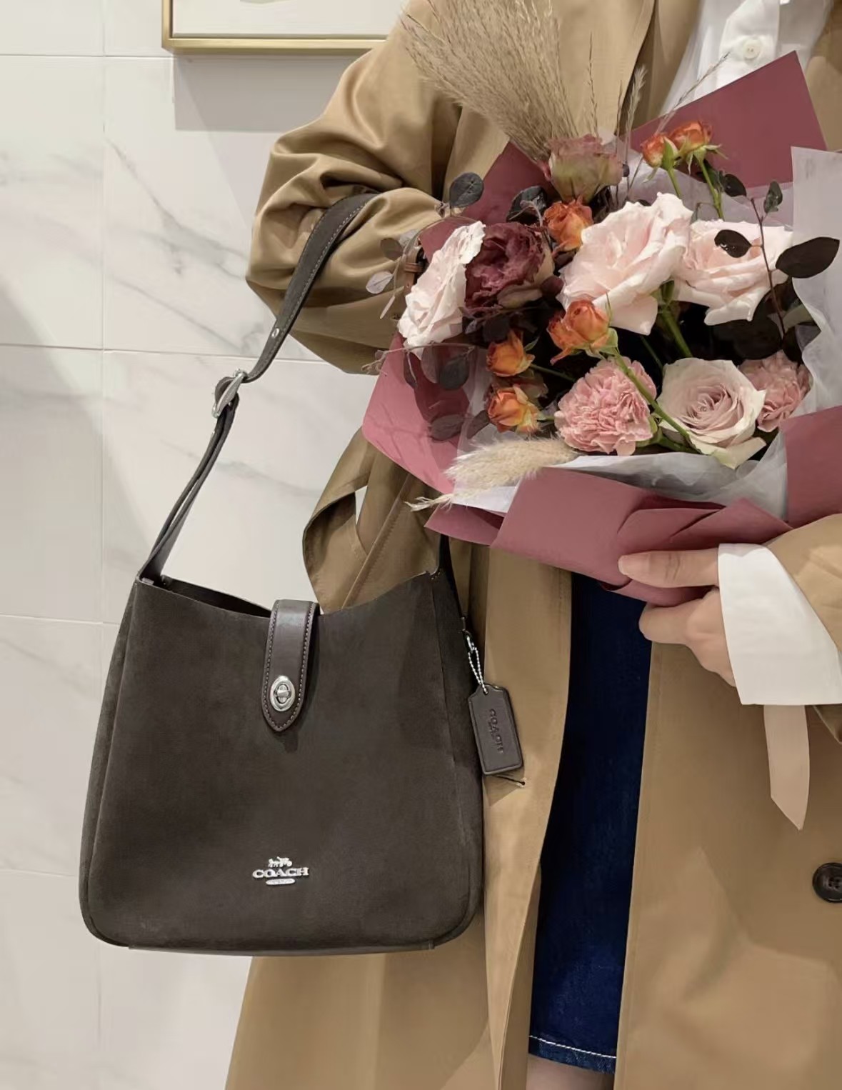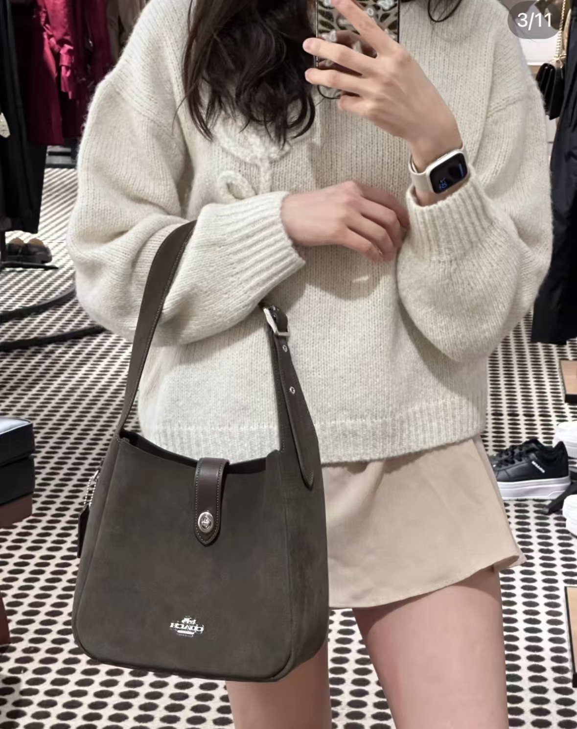 COACH,hadley系列流浪包,果然是一出一个精品,一出一个王炸,YSL家的hobo平替,满满的高级感,包体轻盈,容量很大超级实用,还配了一个延长肩带,可以单肩斜挎两不误,
