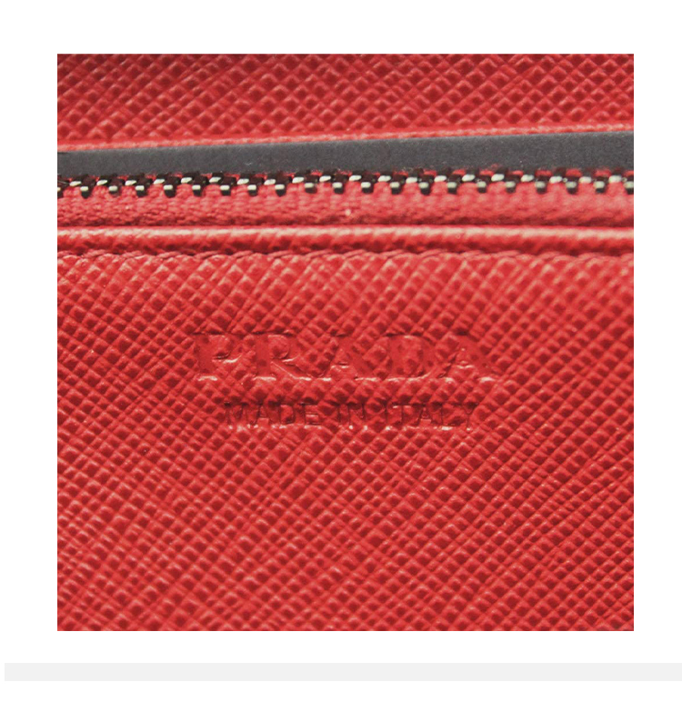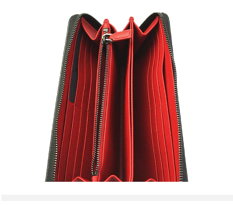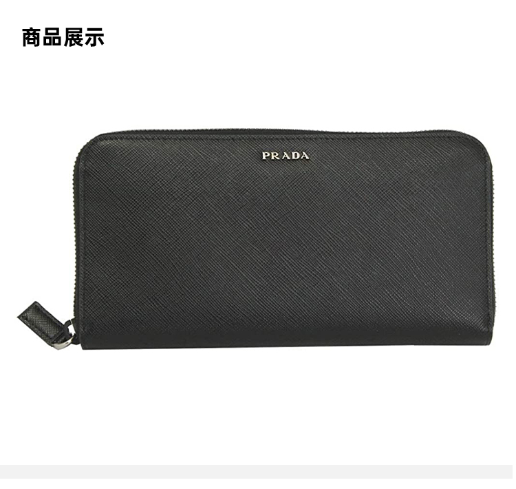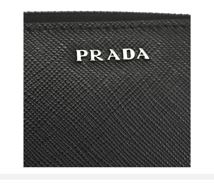 PRADA 普拉达 男士 Saffiano 十字纹皮革金属字母徽标拉链票夹钱包 黑色 2ML317 C5S F0D9A