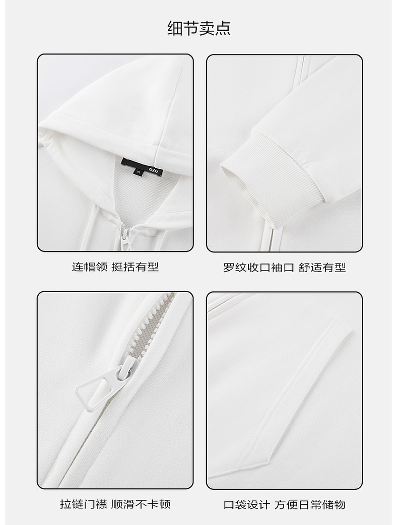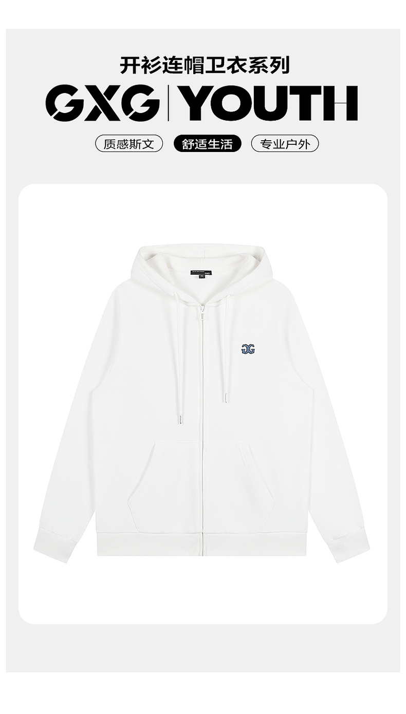 GXG男装【时尚印花】春季潮流拉链抽绳情侣款连帽开衫卫衣K&C