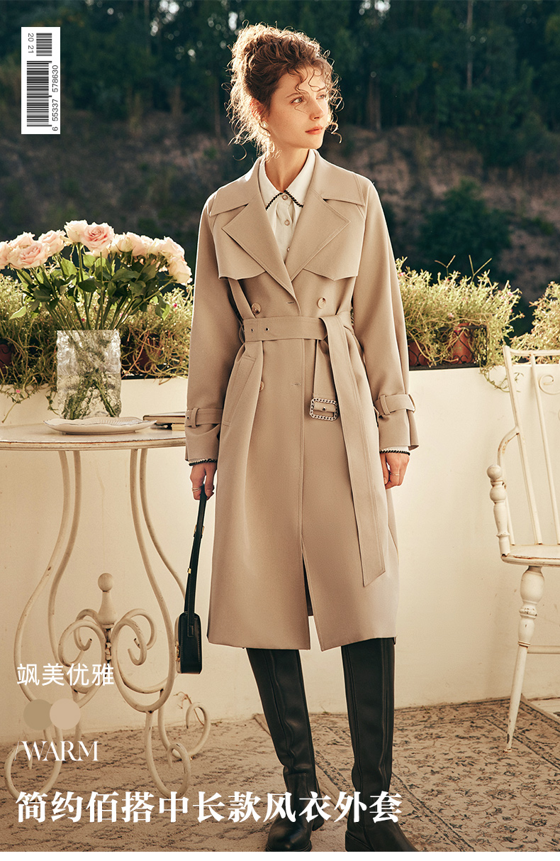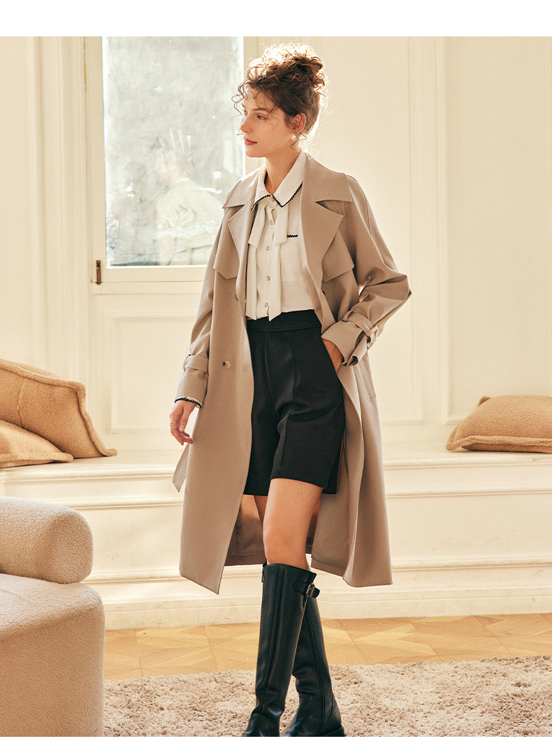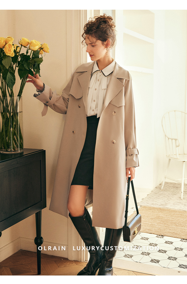 OLrain欧芮儿法式卡其色风衣外套女秋冬2022年新款宽松英伦风大衣