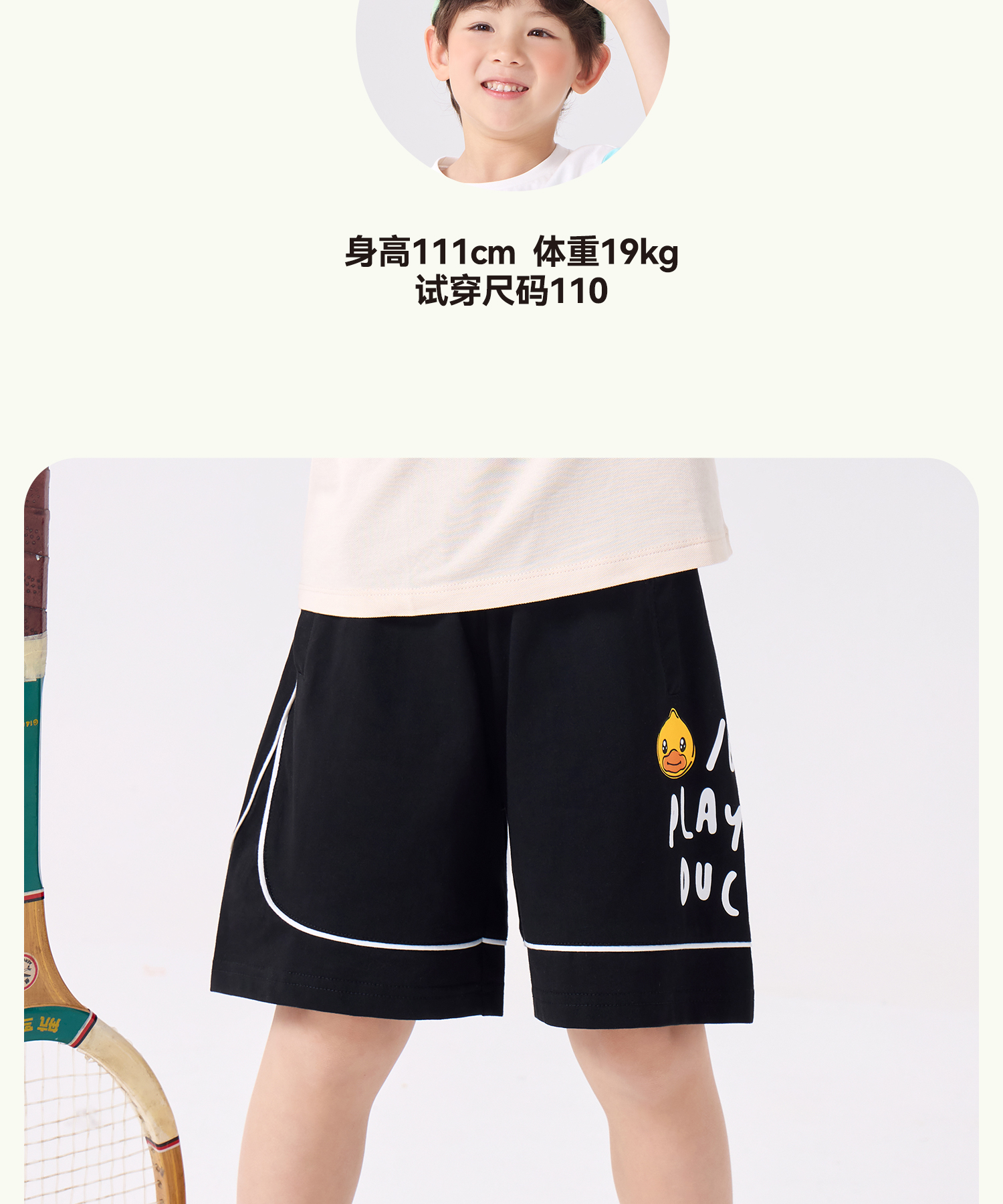 bduck小黄鸭童装夏季男童短裤儿童纯棉五分裤夏季中小童运动裤薄105-150 BF2652006
