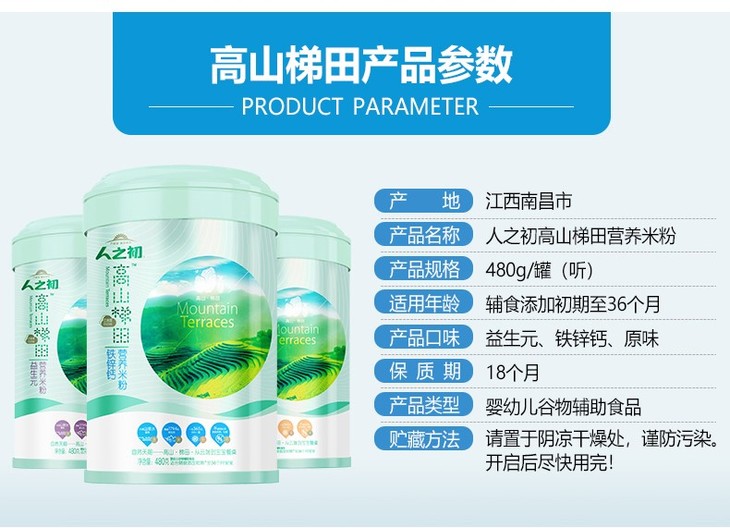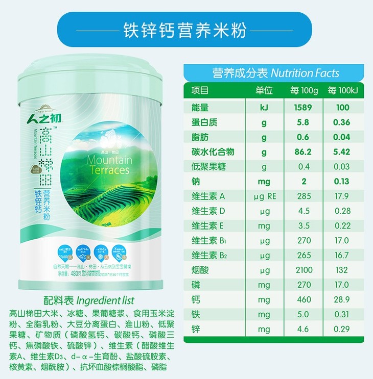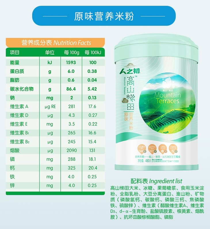 人之初高山梯田益生元营养米粉罐装480g