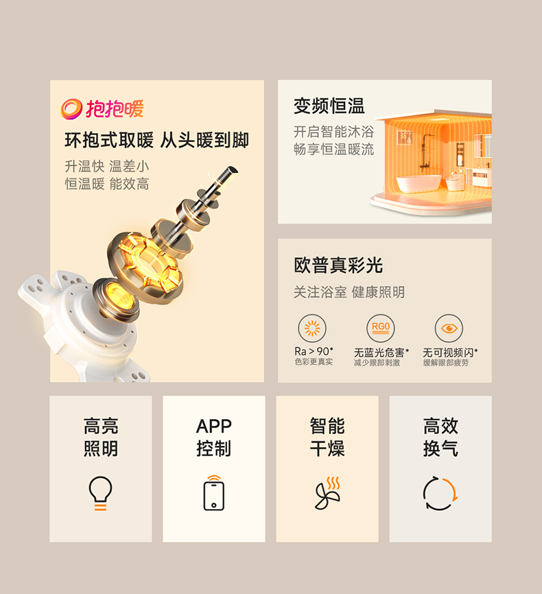 欧普(OPPLE)抱抱暖风暖浴霸灯取暖浴室排气扇一体集成吊顶卫生间京逸01Si