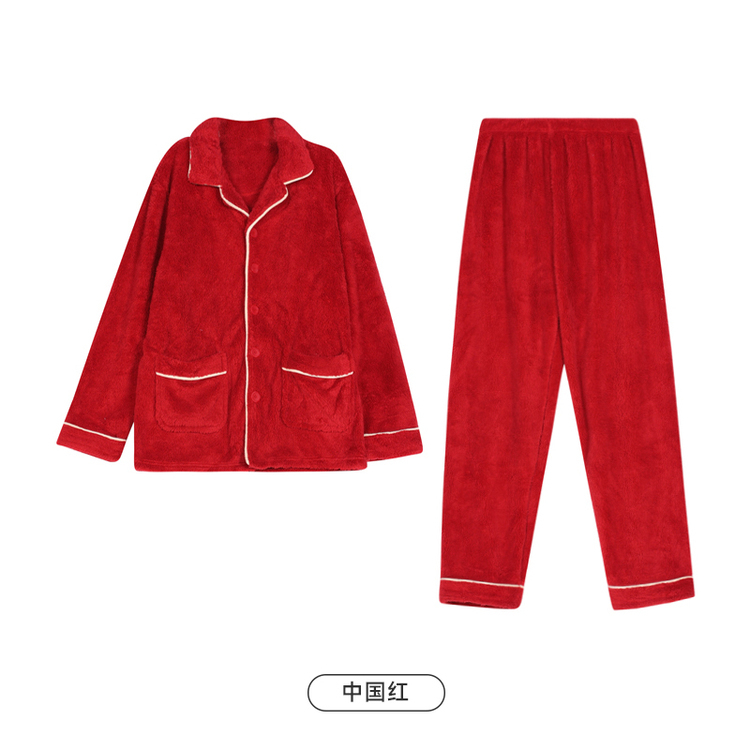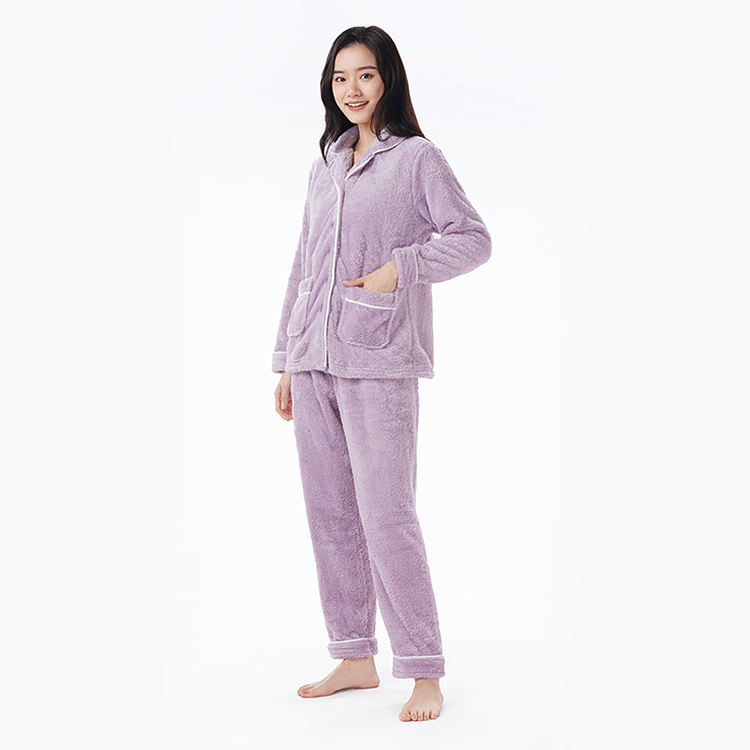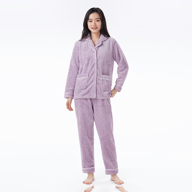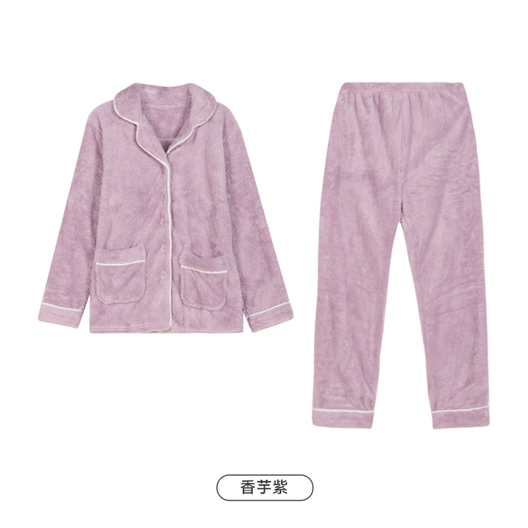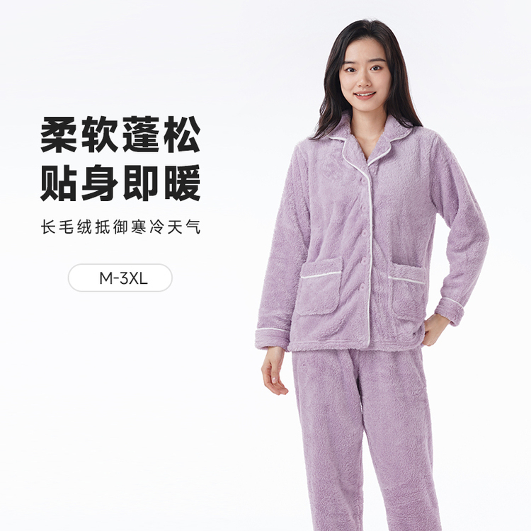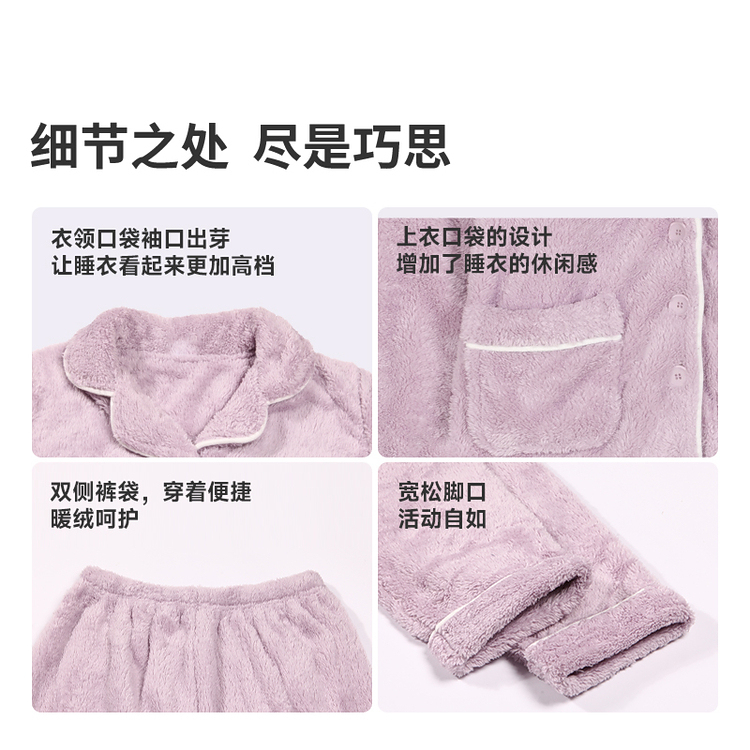 都市丽人睡衣女长毛绒睡衣女士家居服长袖长裤法兰绒套装LHH0B5