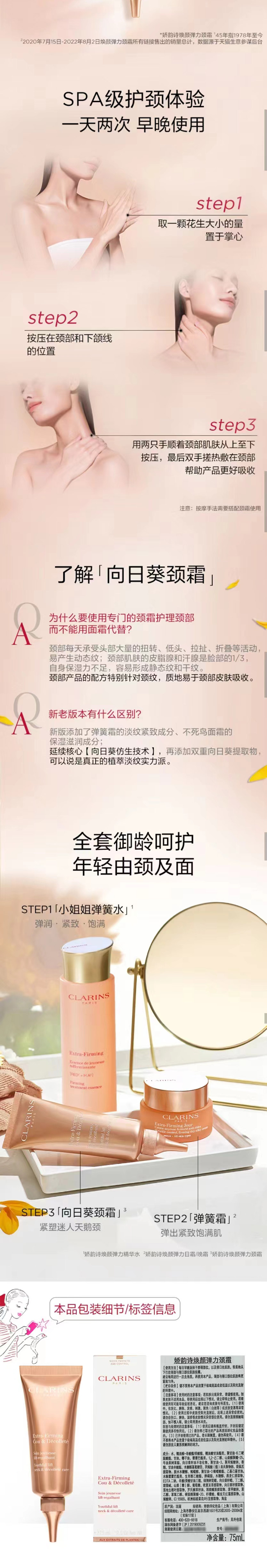 娇韵诗「向日葵颈霜」焕颜弹力颈霜75ml