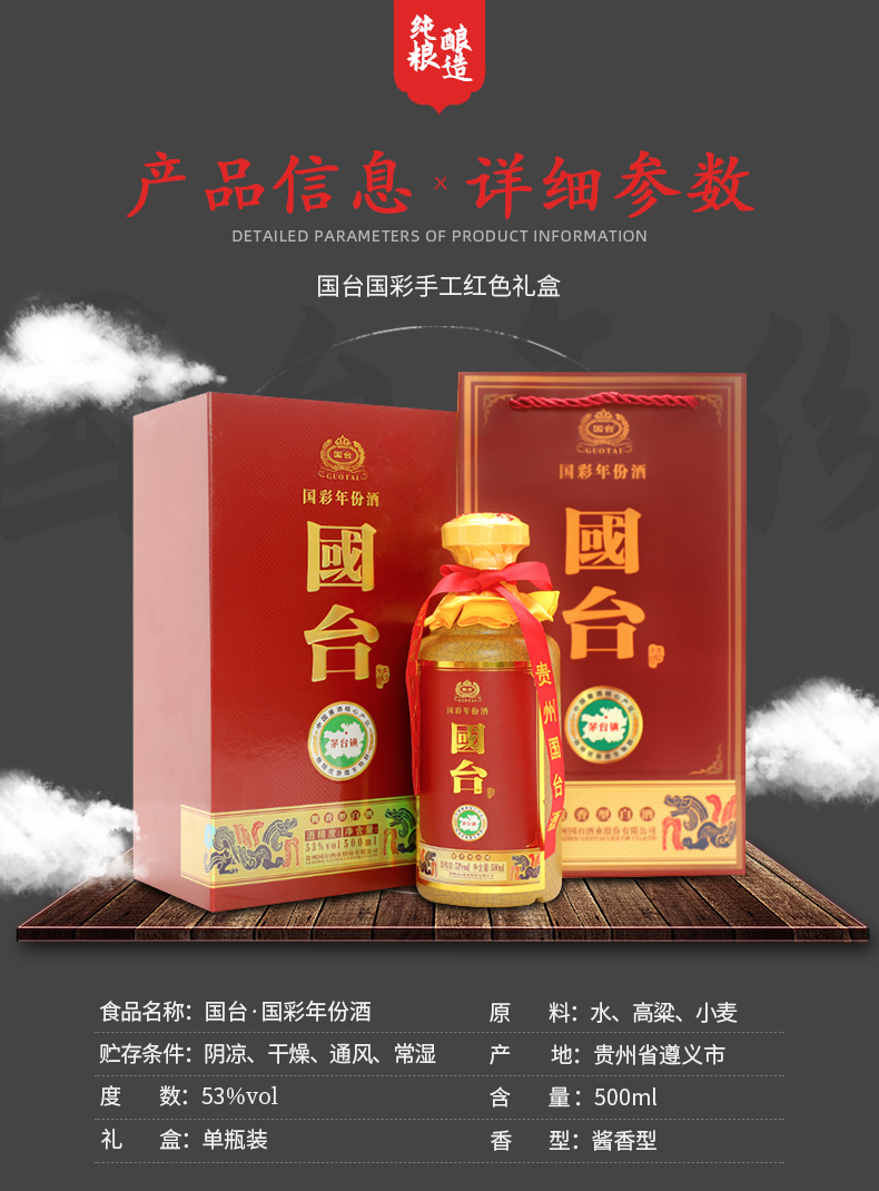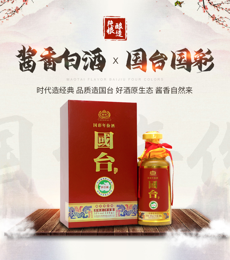 贵州国台酒 酱香型白酒53度500ml 国彩年份酒