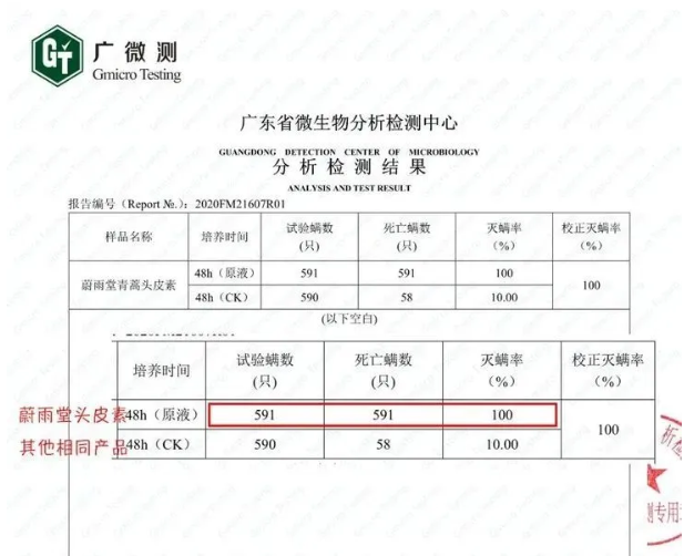青蒿精粹能将洁净力量输送到头皮深层,能长效去屑并破坏螨虫的生长环境。研发团队还做了除螨实验: