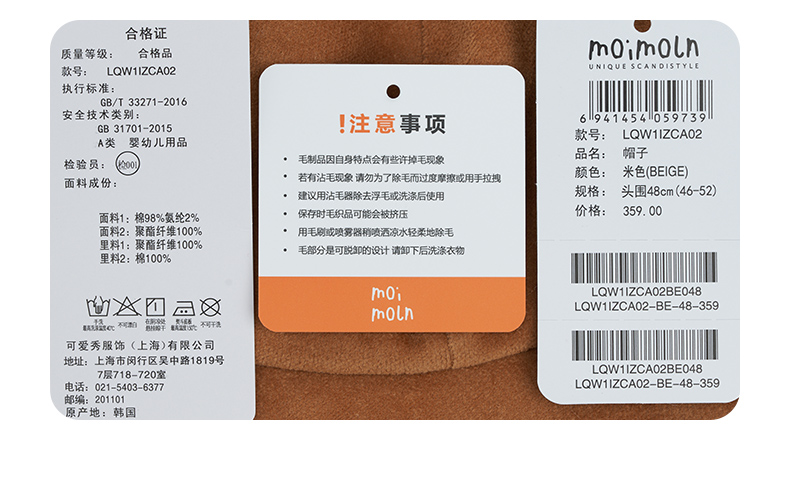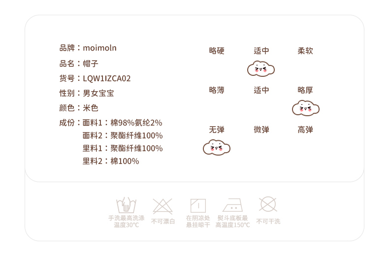 moimoln小云朵童装2021年冬季新品男女宝宝加绒休闲帽子保暖LQW1IZCA02
