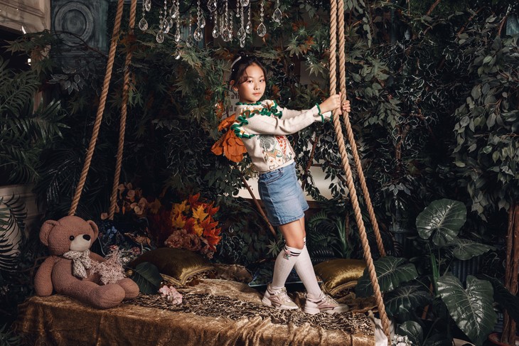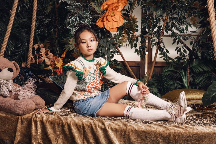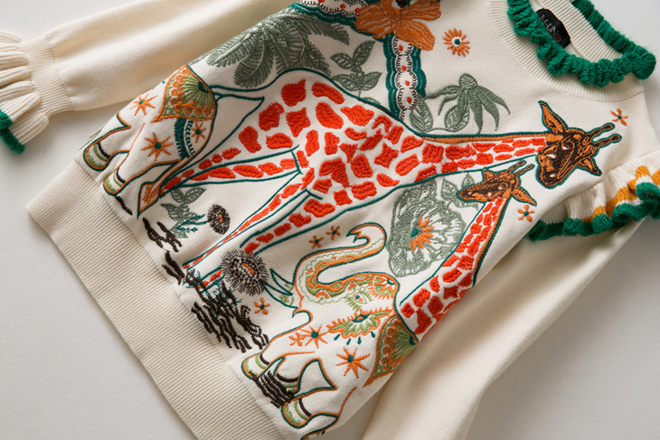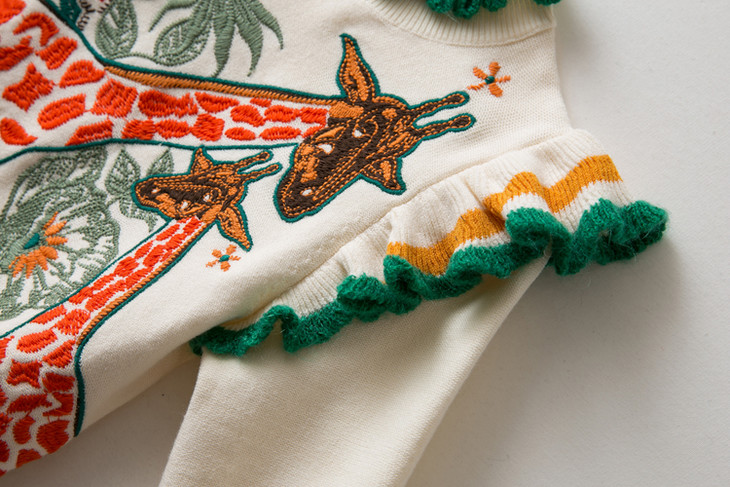 女童荷绣花毛衫