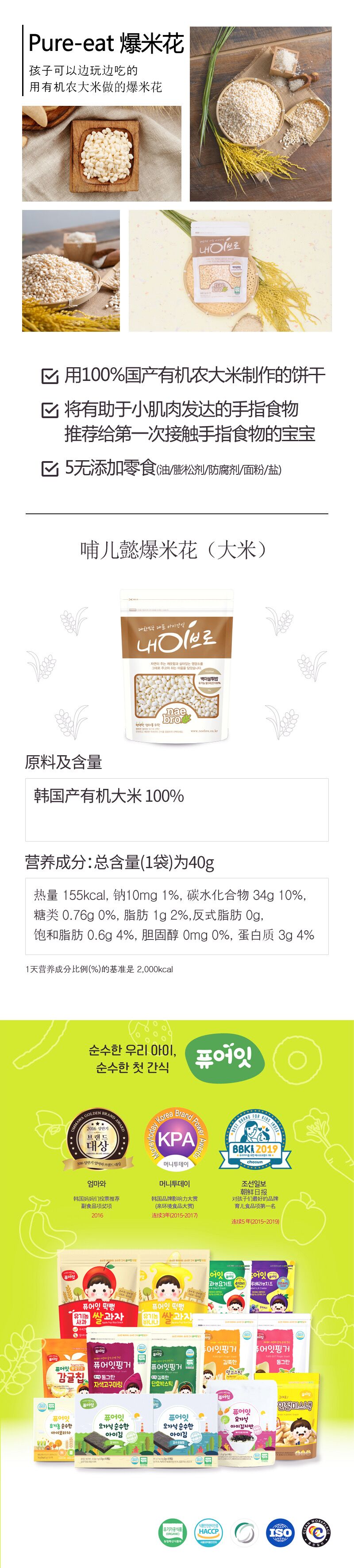 宝宝零食 哺儿懿爆米花大米花50克装 韩国宝宝辅食零食