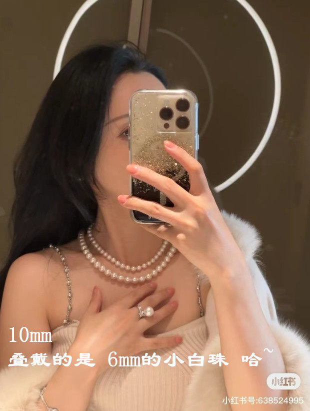 这条天女粉的珠光色 是效仿Akoya的人鱼珠 日本最新镀层技术 国内没有的