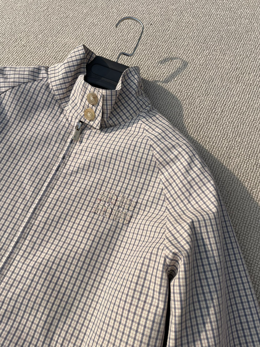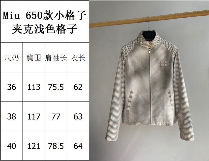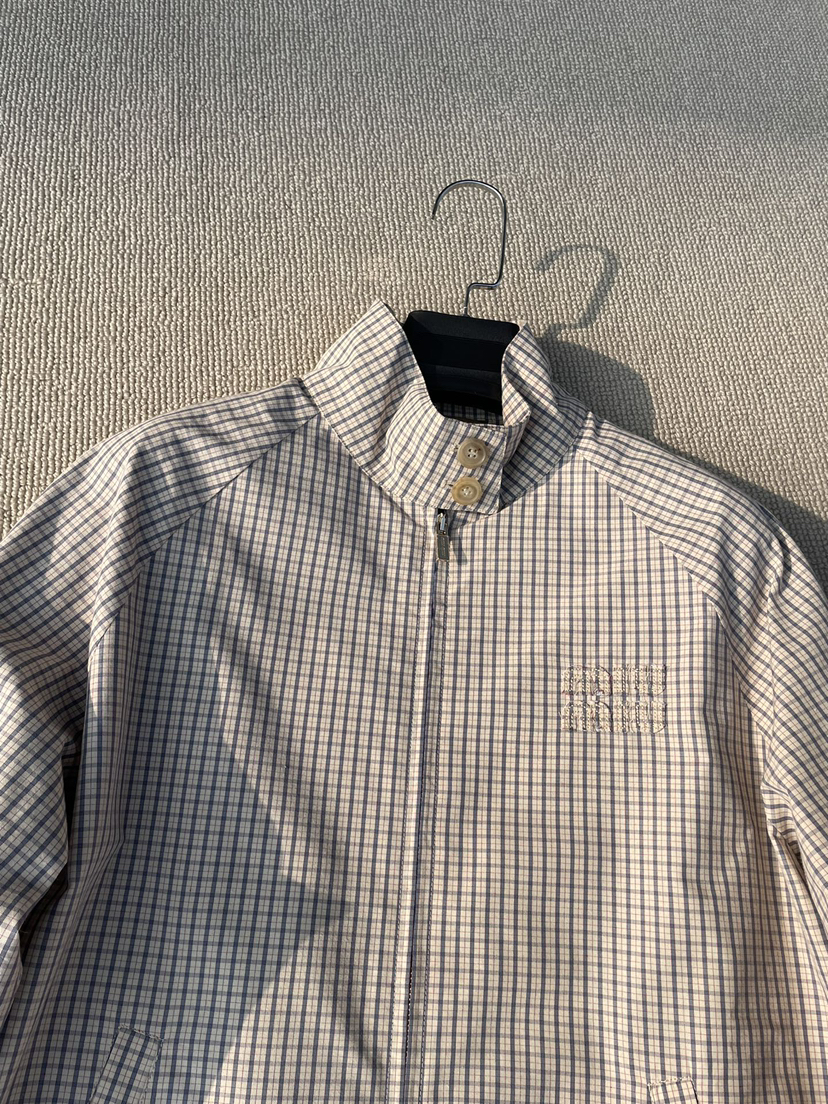 413-3 特惠 独家圆正 miu科技棉小格子立领夹克 轻盈优雅春夏外套 我穿40