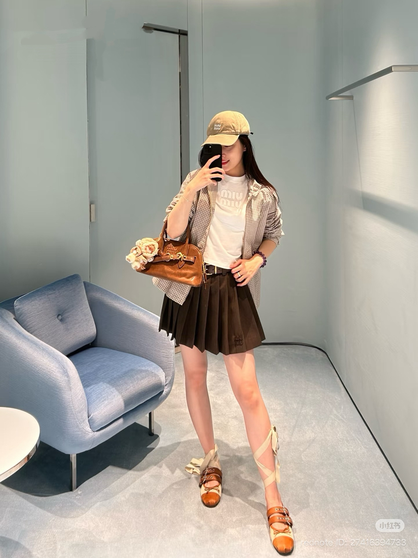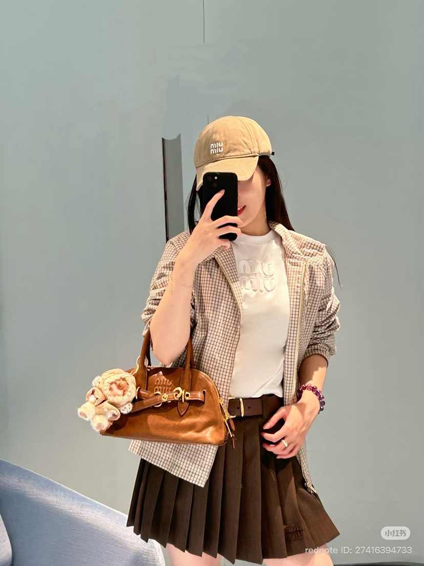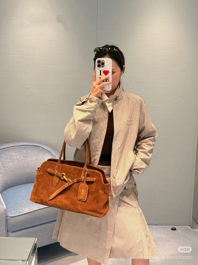 没想到啊,时至今日,咱们也看到miu用上了科技面料,怕打集团客供面料,沙色细格纹是51%再生锦纶+49%棉,内衬是百分百棉。科技面料,亲肤细腻特别的排湿,自带质感。你们看辅料,lampo拉链,巨贵的白牛角扣。这玩意你们随意比,外头都没有