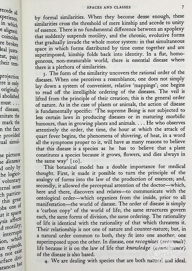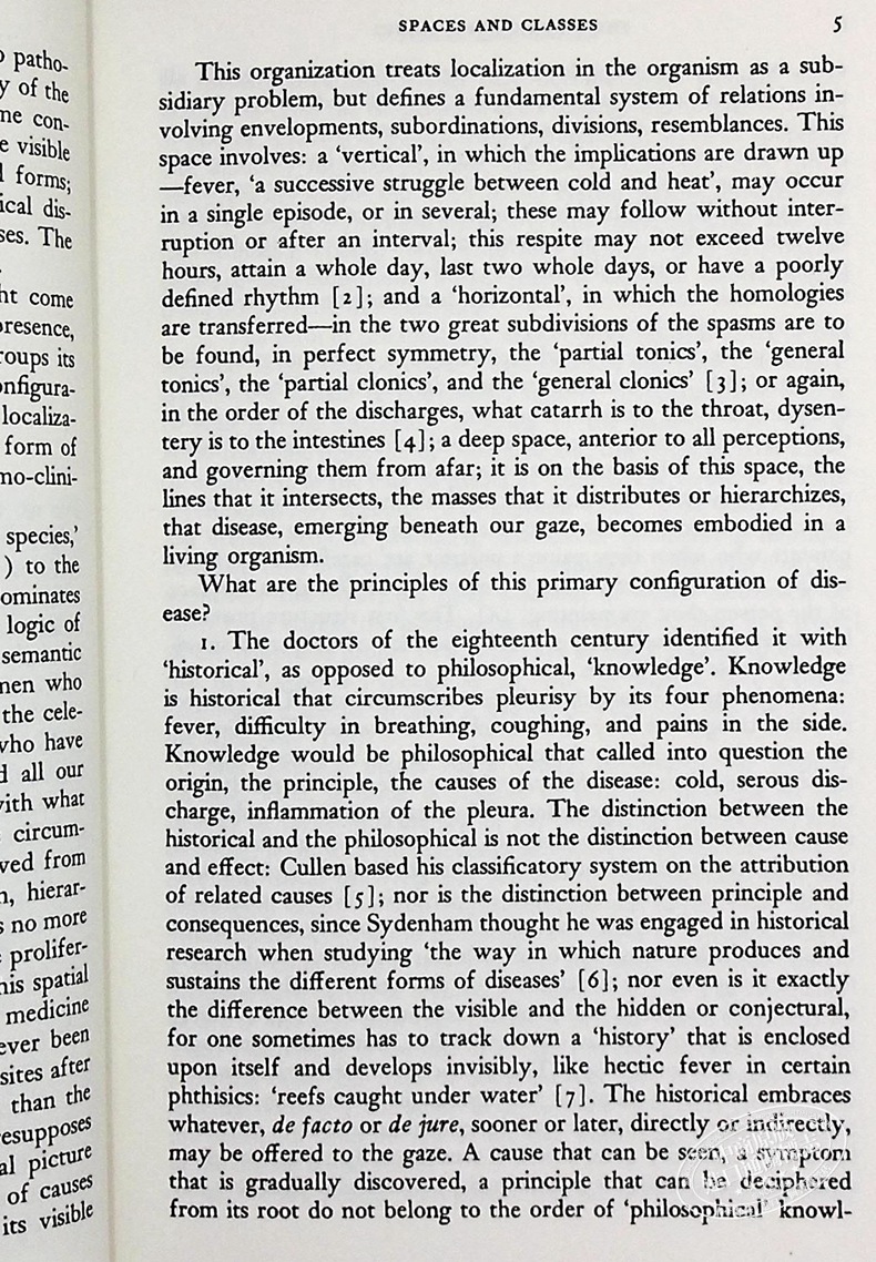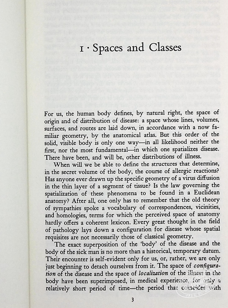 在18世纪,医学经历了一次突变。医学知识初次具有了以前只属于数学的精细度。身体成为可以被描绘的东西。疾病成为新的分类规则的对象。医生们开始描述几个世纪以来一直处于可见和可表达的门槛之下的现象。