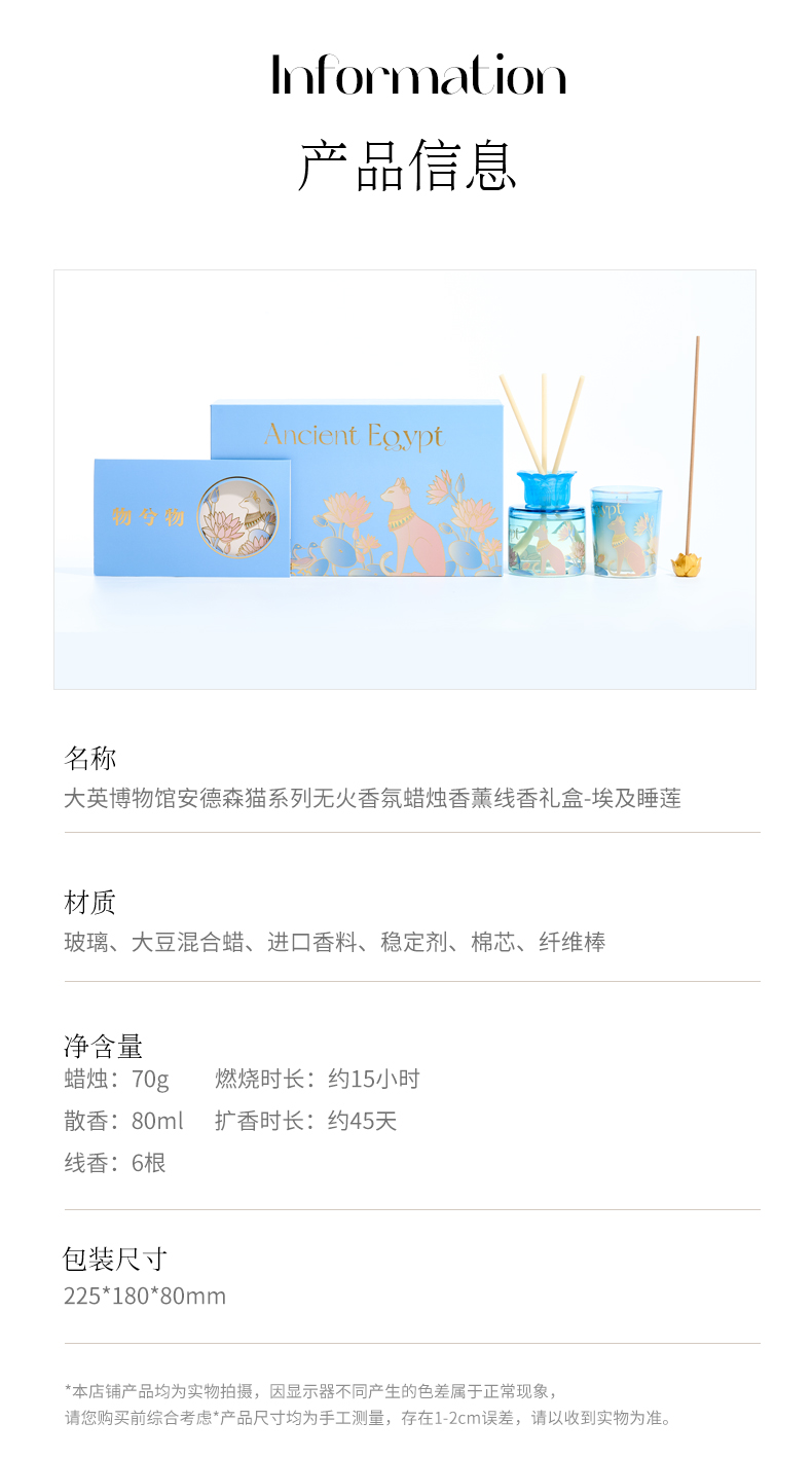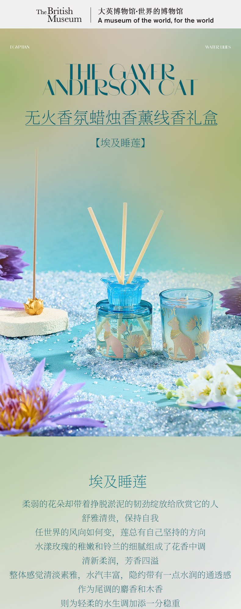 大英博物馆 盖亚·安德森猫系列 无火香氛蜡烛香薰线香礼盒 埃及睡莲