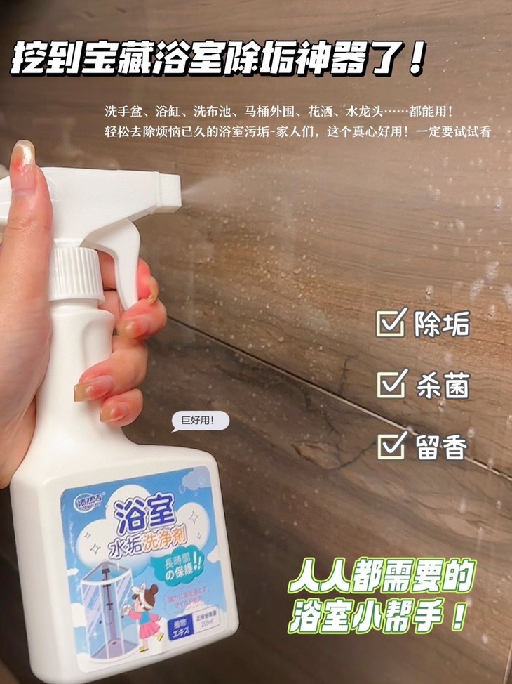 ▪️浴室洗净剂 富含表面活性剂,简单去垢不费力 可横扫浴室顽固皂垢水垢和多种污渍 包括洗手盆✅浴盆✅脸盆✅ 也可用于水槽、浴缸、地砖等的清洗