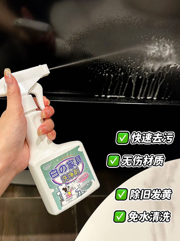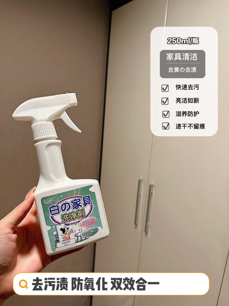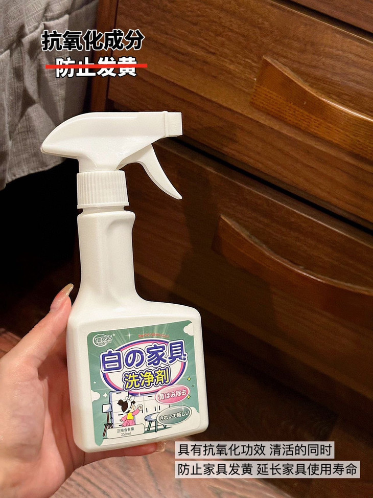家具发黄有污渍 一定试试ZIRANJOY渍然洁·家具洗净剂 能有效去除油渍,污渍,笔迹 深层去污,去黄亮白,而且不伤害家具材质 没有异味,不用水洗,喷壶设计方便易用✅