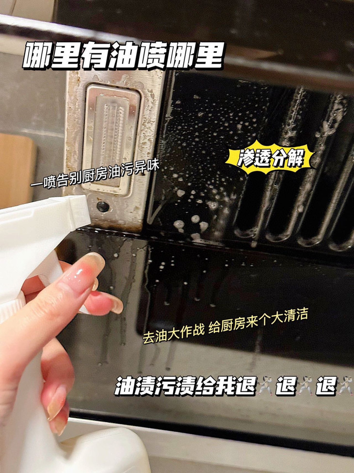 ▪️油污洗净剂 一喷一擦陈年污垢全消❗❗ 家居打扫不用慌,老屋换“新房” 用这款重油污清洁剂,统统搞定!!! 妈见夸的清洁好物~ 买回家面对重油污也很省时省力!!!