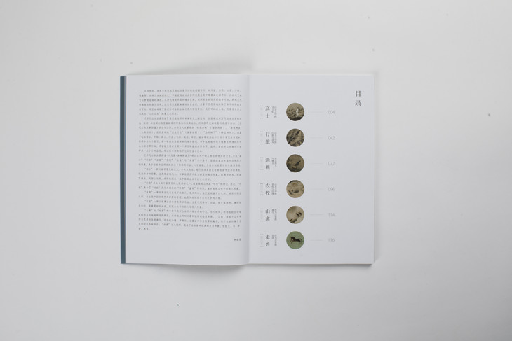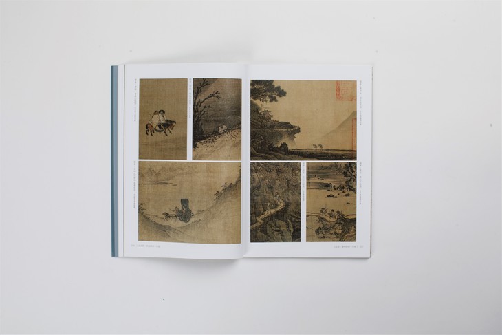 《历代山水点景图谱·人文景·渔樵耕读》一册以山水中的人物与动物活动为主,分成“高士”“行旅”“渔樵”“农牧”“山禽”与“走兽”六个章节,旨在涵盖山水画中出现的人物形象,展示绘画作品所反映的各个阶段的社会、人文面貌,为读者的欣赏与创作提供帮助。“高士”一章以画中常见的文人、士大夫为主,他们往往是画家安排在画中遣兴的角色,既是作者的投影,也是观者的代入。本章收录历代较为典型的高士形象,或携琴访友,或幽思独坐,或登山远眺,或倚松观泉,集中展现山水中的文人活动。“行旅”是山水画中最常见的人物活动之一,最能展现山水画“可行”的特点。因此,“行旅”集合了“行旅”及与之相关的“待渡”“盘车”等场景,集中展现山水中的旅人形象。“渔樵”一章收录历代名家笔下的渔人、樵夫形象,他们或悠游芦汀之间,或苦行荆丛之中,自古是中国文学艺术重要的母题,也是天然归属于山水之中的人物。“农牧”一章以农事活动与畜牧活动为主,主要呈现耕作、田垄、牧牛等题材,兼顾收录丝纶、蚕桑等相关活动,展现山水中的农人与牧人形象。“山禽”与“走兽”两个章节是对山水中人物活动的补充。与人相同,动物也能生动地反映作品的地域和时代特征,并营造出四时之景和独特的绘画意境。“山禽”着眼于山水中作为点景的各类禽鸟;“走兽”与之同理,遴选了山水画中经典的走兽形象,包括犬、马、羊、驴、鹿等。