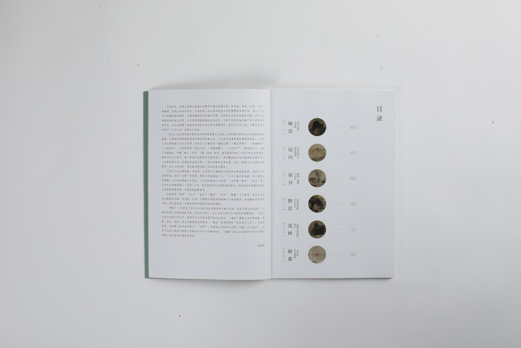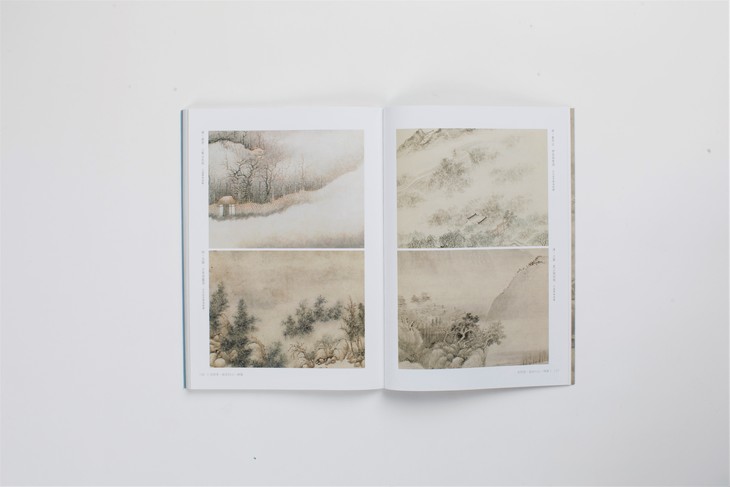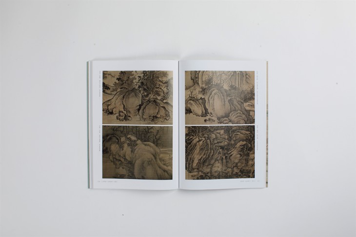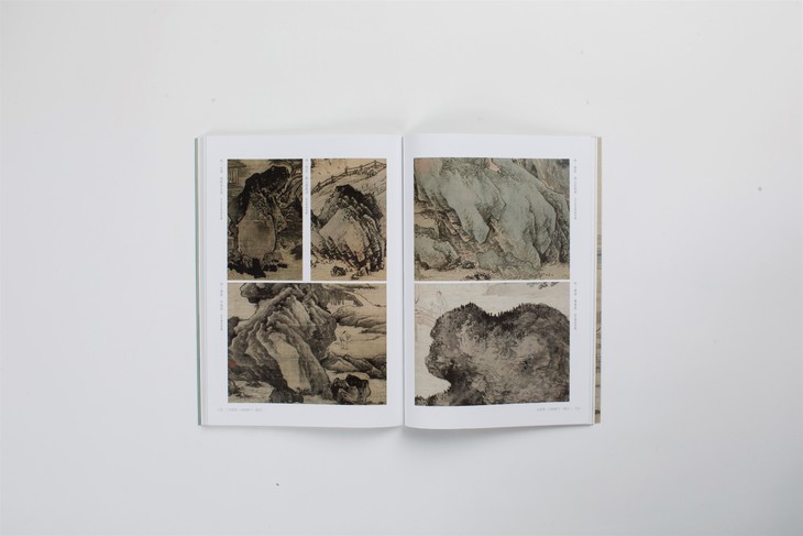 《历代山水点景图谱·自然景·山间林下》遴选的内容并非点景所能局限,而是山中的各种景观,是对“点景”的拓宽。本册将“峰峦”“远山”等山水中的自然景观纳入“点景”之中,意在展现历代各种流派的画法,为绘画创作者提供灵感,为欣赏者拓宽视野,为研究者选辑素材。本册收录“峰峦”“远山”“崖谷”“磐岩”“茂林”“朝暮”六个章节,均为山水中的主要组成元素,其造型、比例、位置都会对绘画的意境产生深刻影响,而其随时代变化的风格、技法也能进一步帮助读者管窥画史的发展演进。“峰峦”一节收录了历代山水画中具有代表性的山峰与峦岭。“远山”以各式远景山岭为主,展现历代不同画家笔下的远山画法。“崖谷”聚焦山水中的悬崖、岩壁、溪谷、峡峪,是山水重要的组成部分。“磐岩”收录经典的“水际突兀大石”。“茂林”一节重在山间的林木点景,所谓“山之眉目”,但并不包括《寒林平野图》那样在画中作为主体的树木。“朝暮”则以山水画中的日月为对象,展现了历代画家对晨昏的表现。