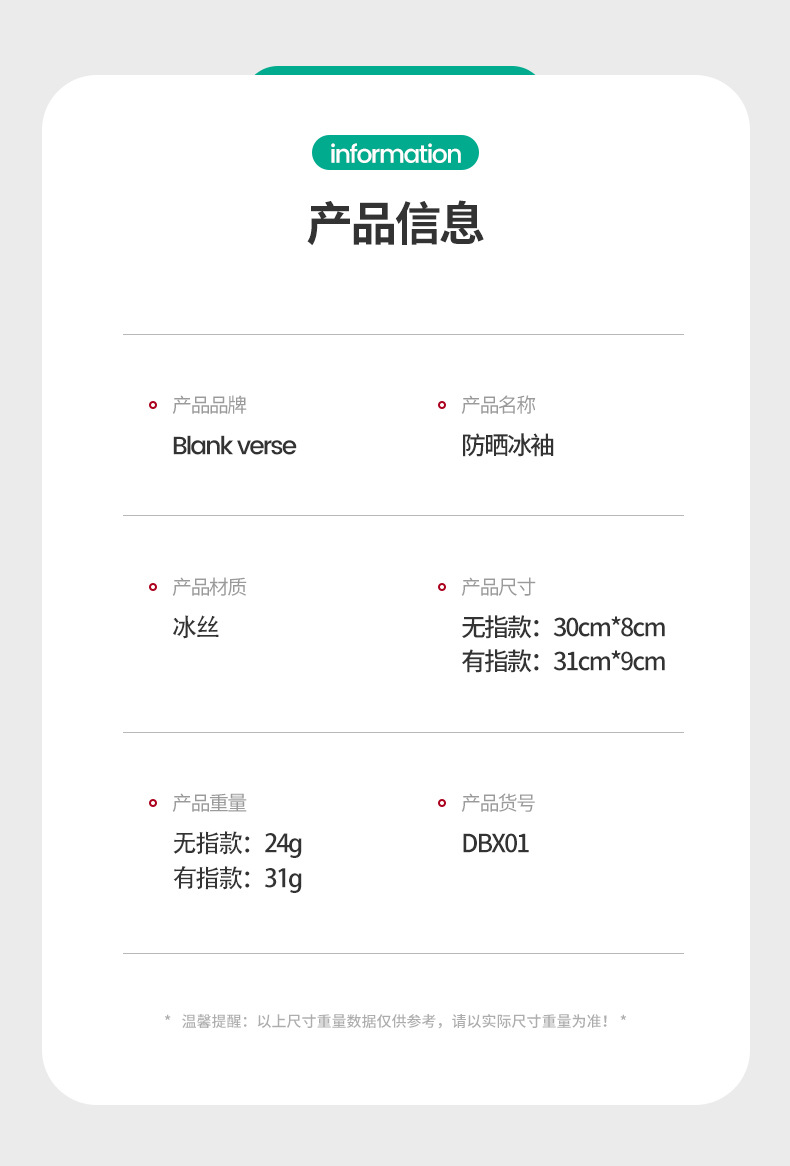 BLANK VERSE夏季新款冰感防晒防紫外线冰丝袖套网红光板纯色运动户外防晒袖套
