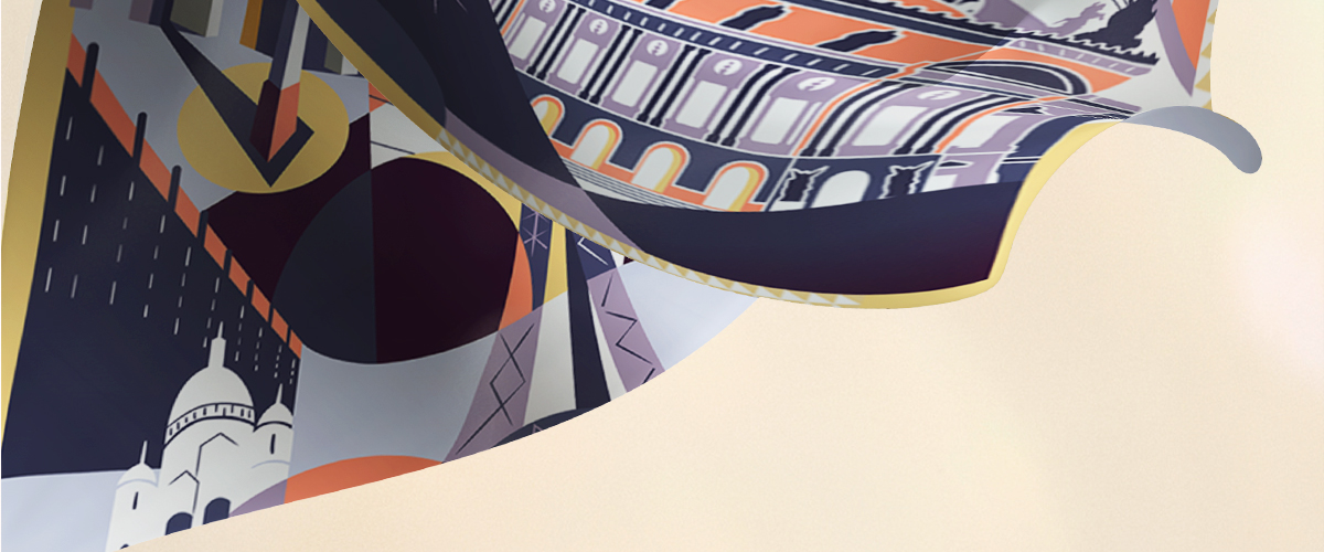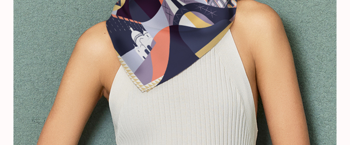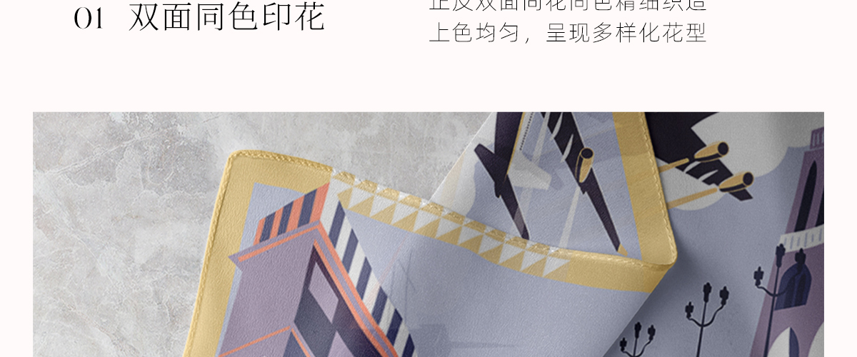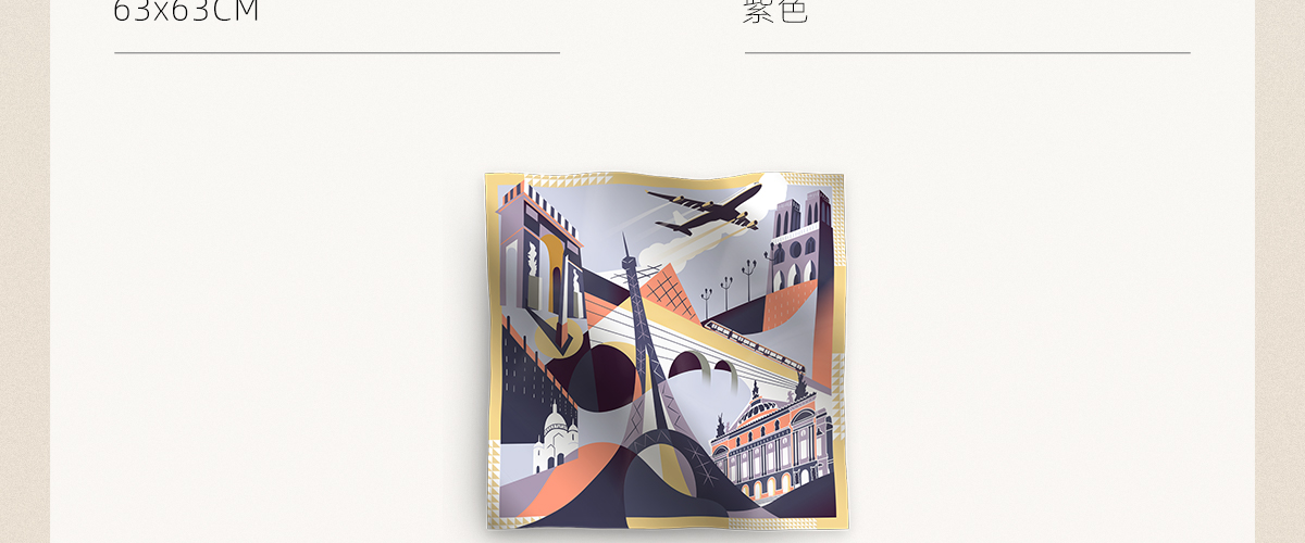 万事利“巴黎掠影”63厘米WL双面印花中方巾