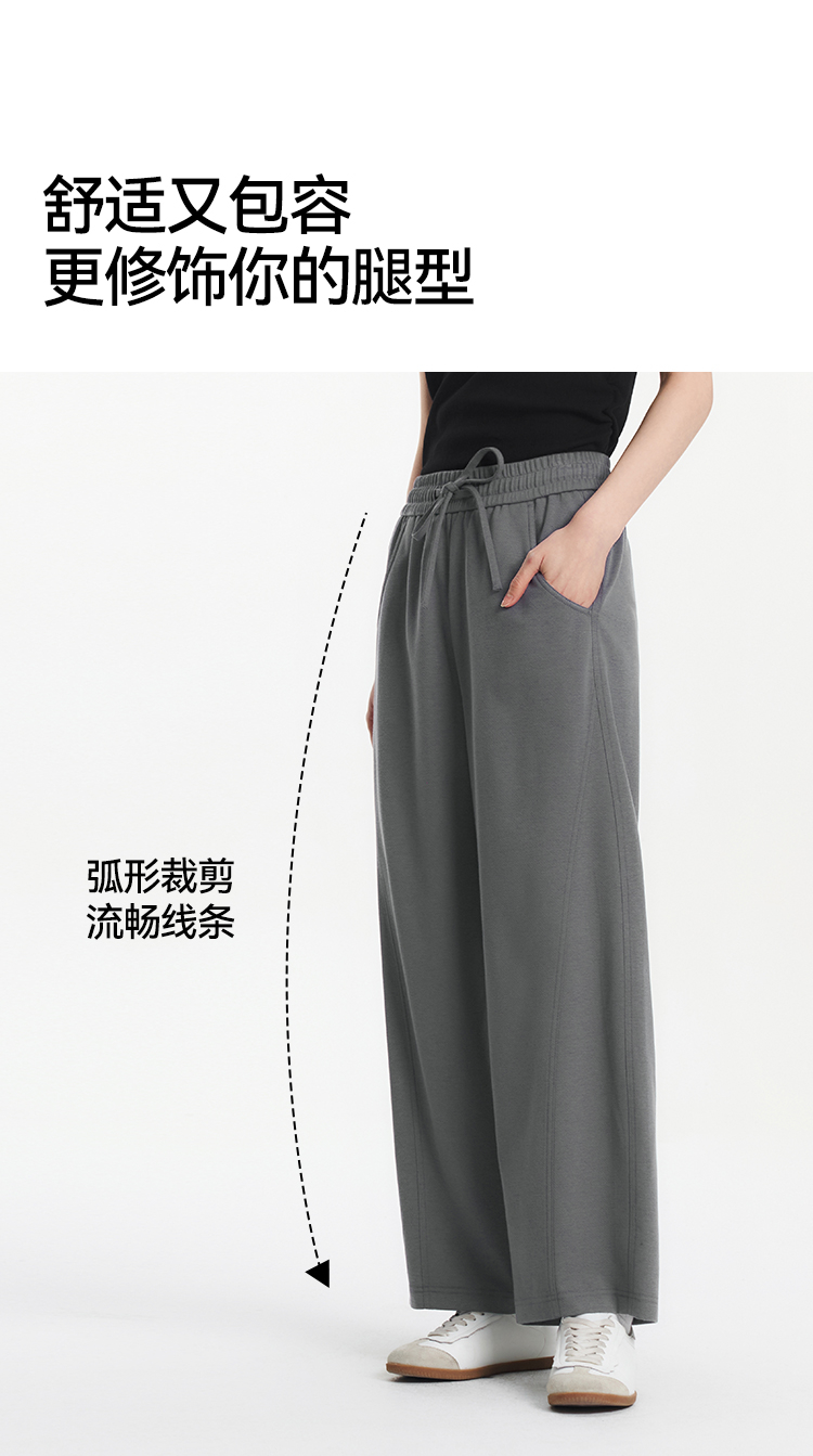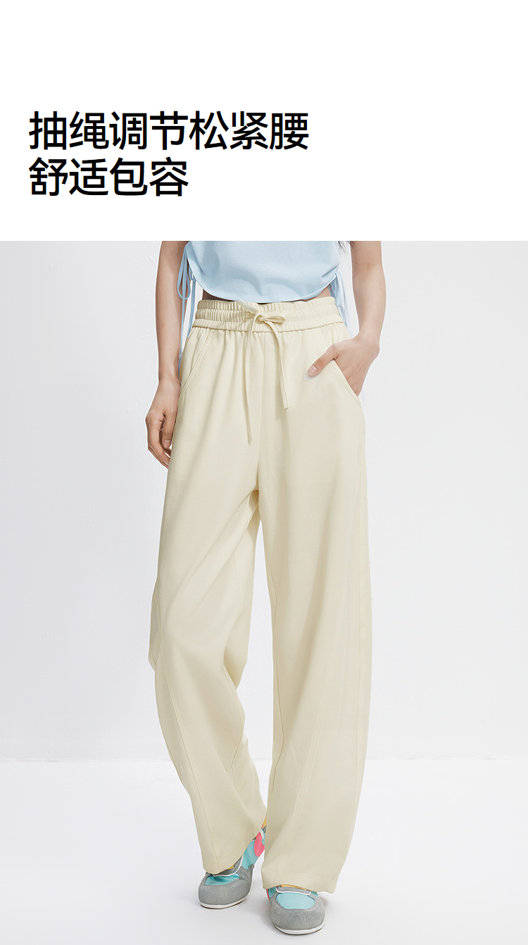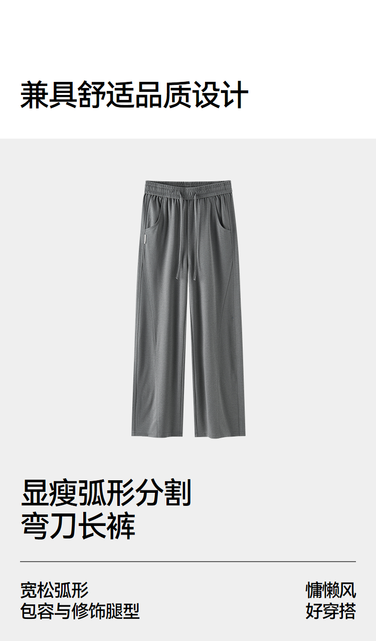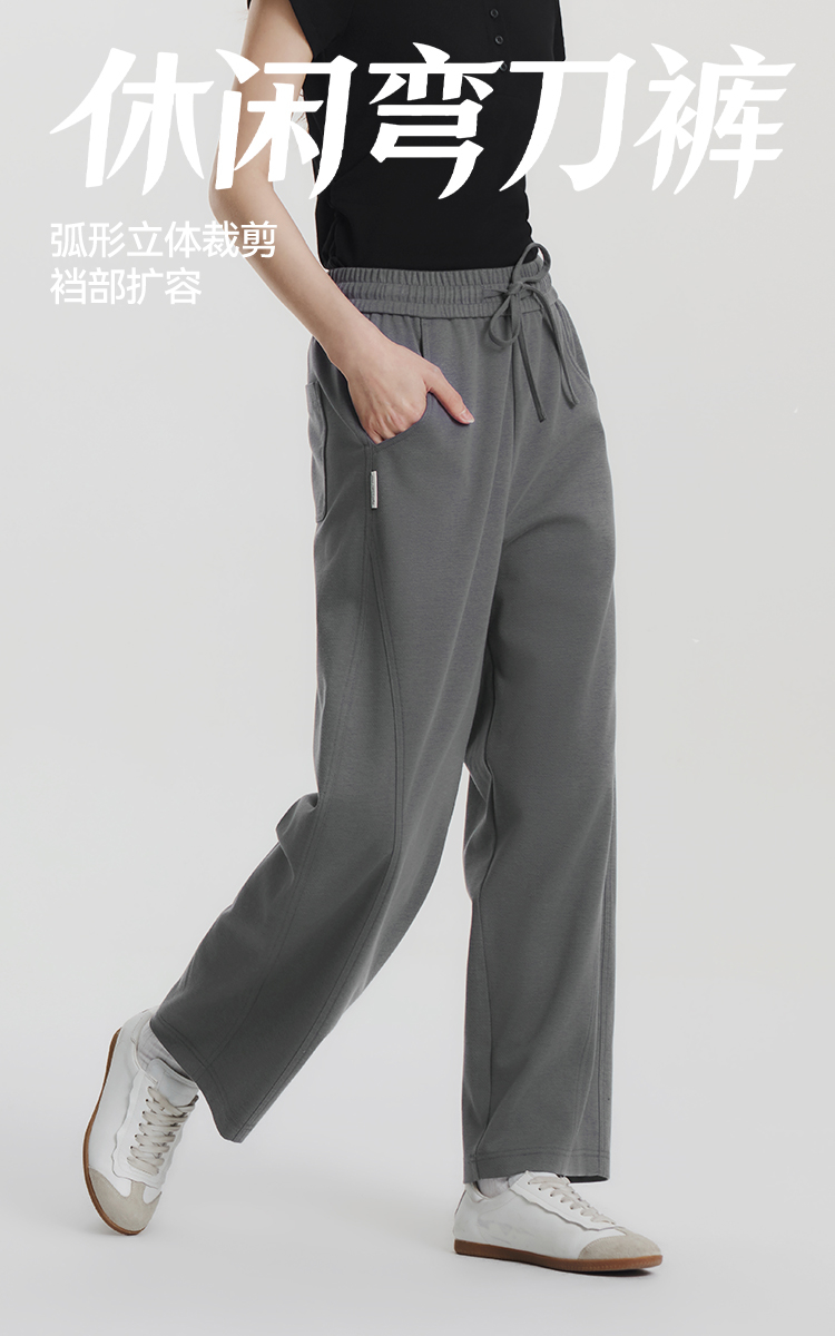 森马休闲裤女夏分割宽松弧形长裤女生显瘦百搭简约慵懒时尚弯刀裤
