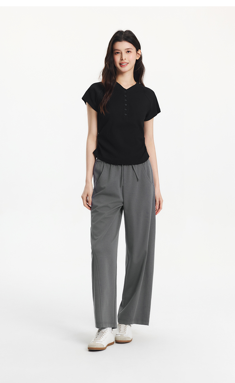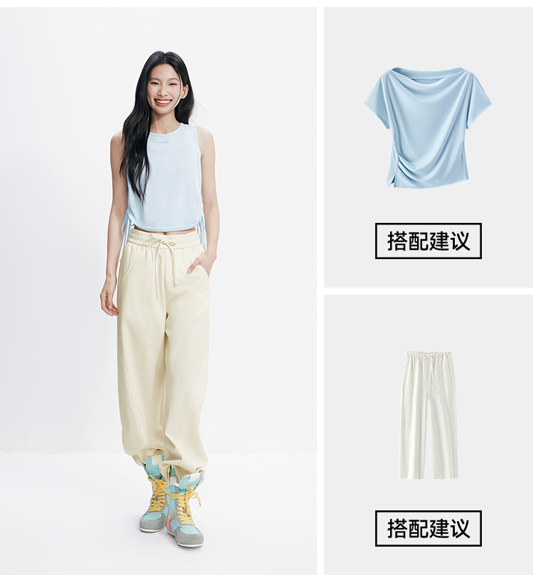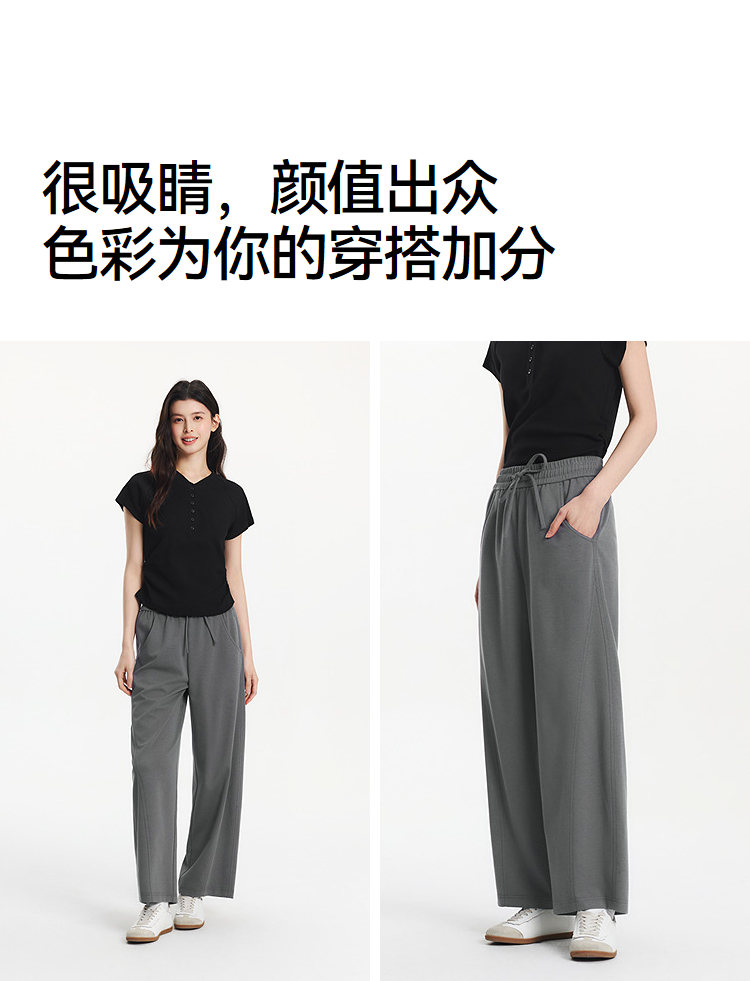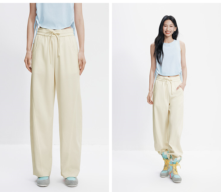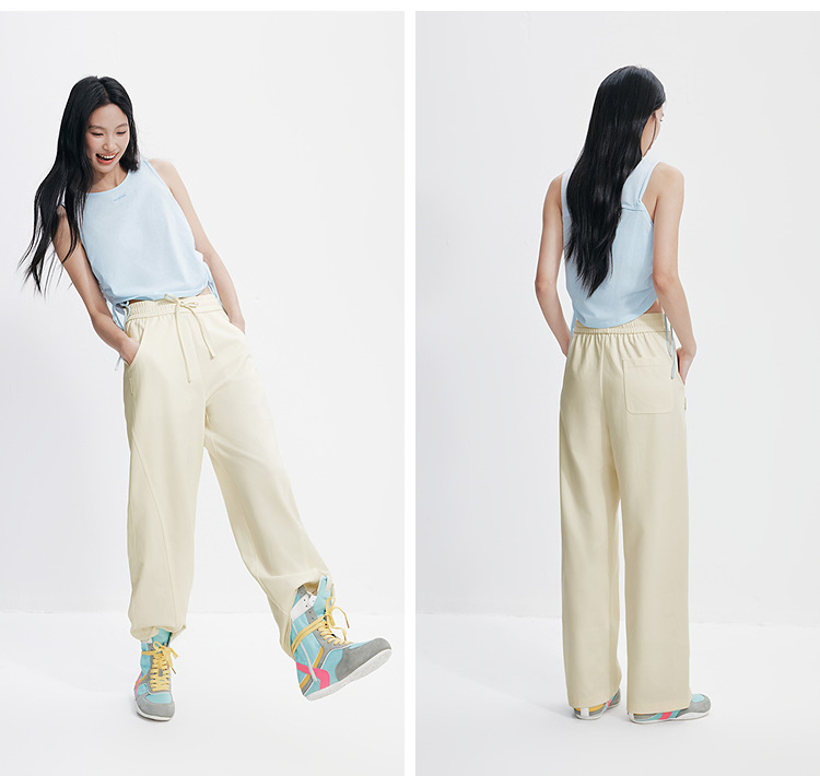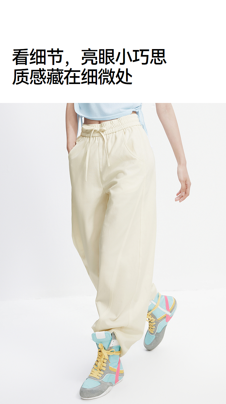 森马休闲裤女夏分割宽松弧形长裤女生显瘦百搭简约慵懒时尚弯刀裤