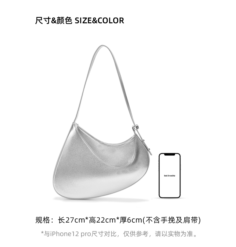 [捡漏价]lost in echo原创设计师款美拉德风蛋蛋包腋下包银色手提包单肩女
