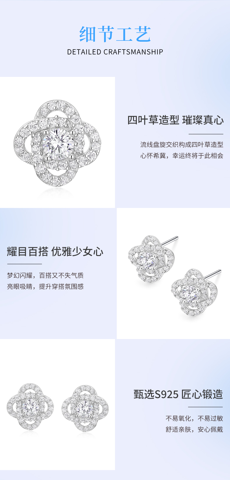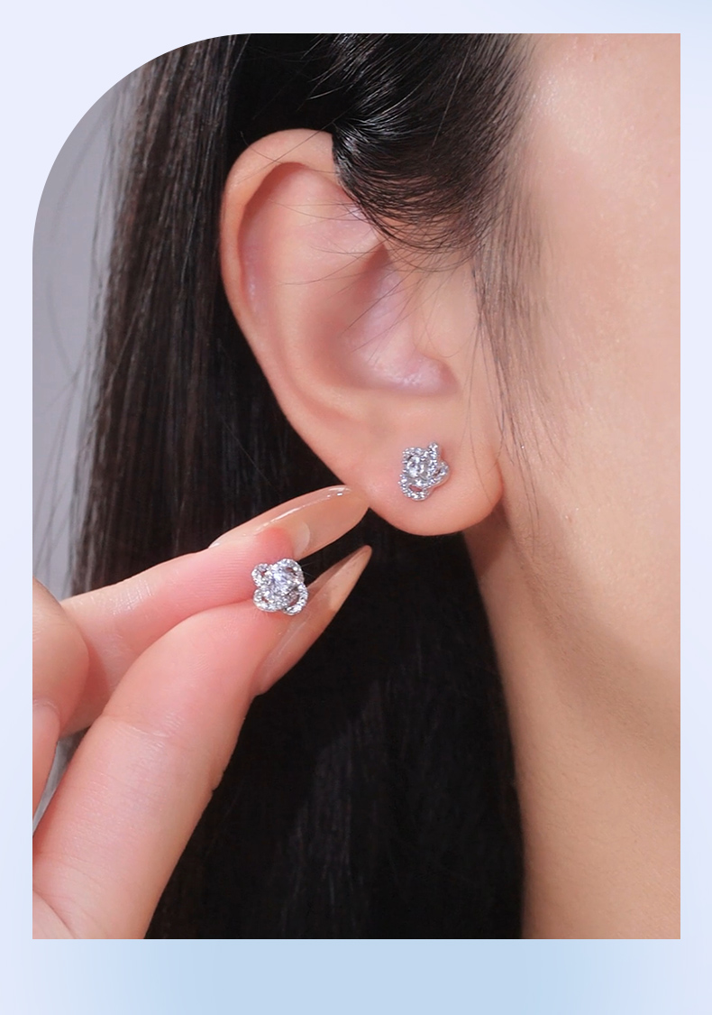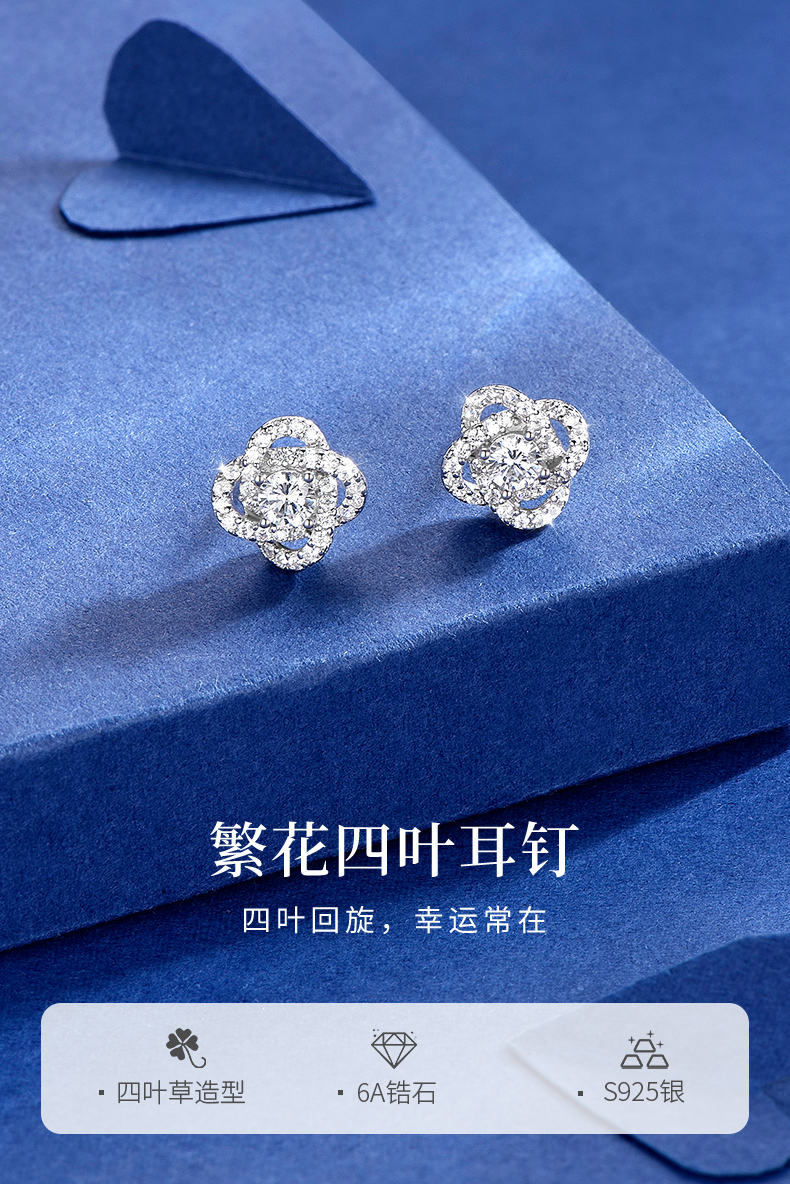 卡蒂罗/KADER 幸运四叶系列 繁花四叶纯银耳饰 轻奢高级感时尚气质小众设计 简约日常通勤百搭女朋友闺蜜表白