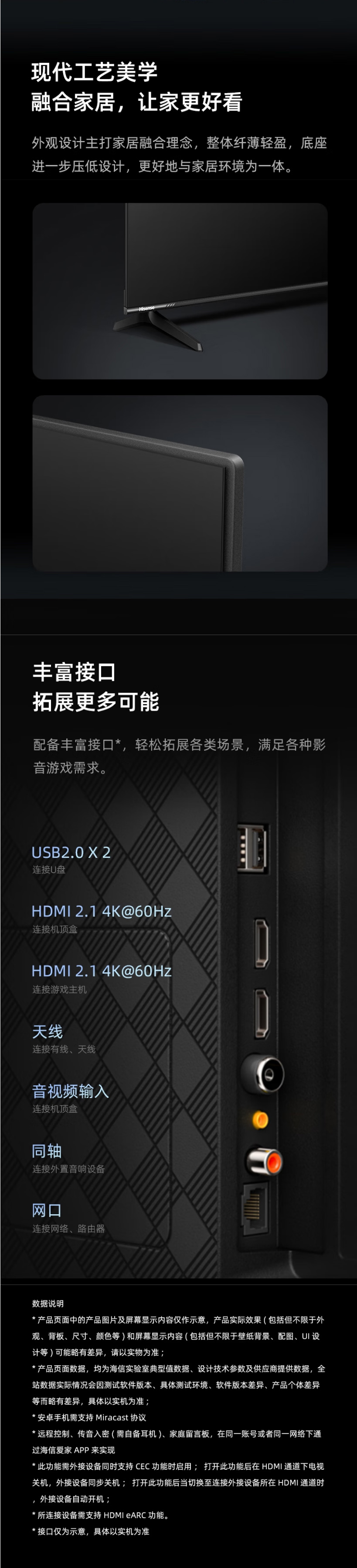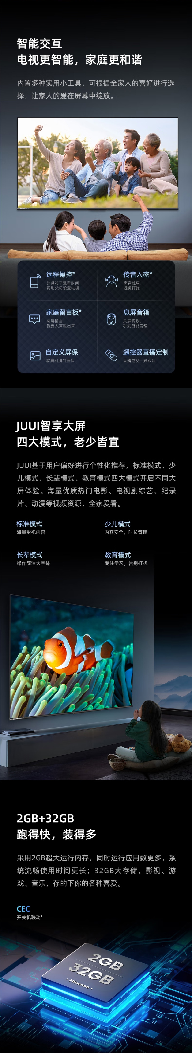 海信Hisense/ 55D3KH(912861) 55英寸 4K HDR 2+32GB Ai远场语音 节能电视 55英寸