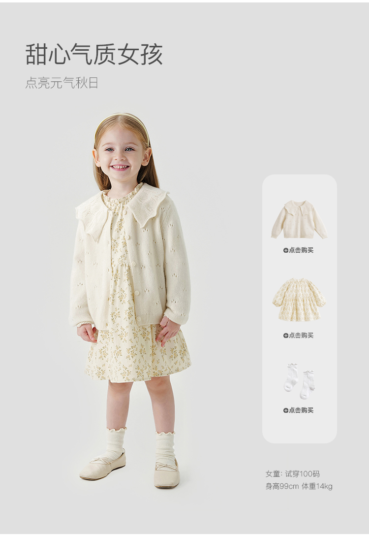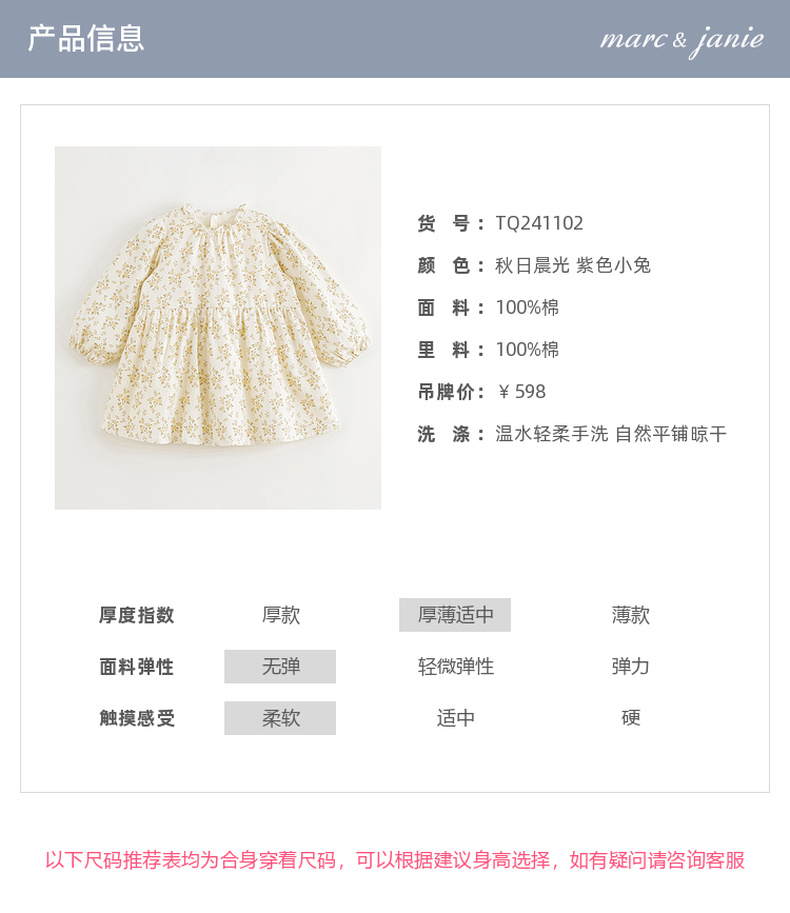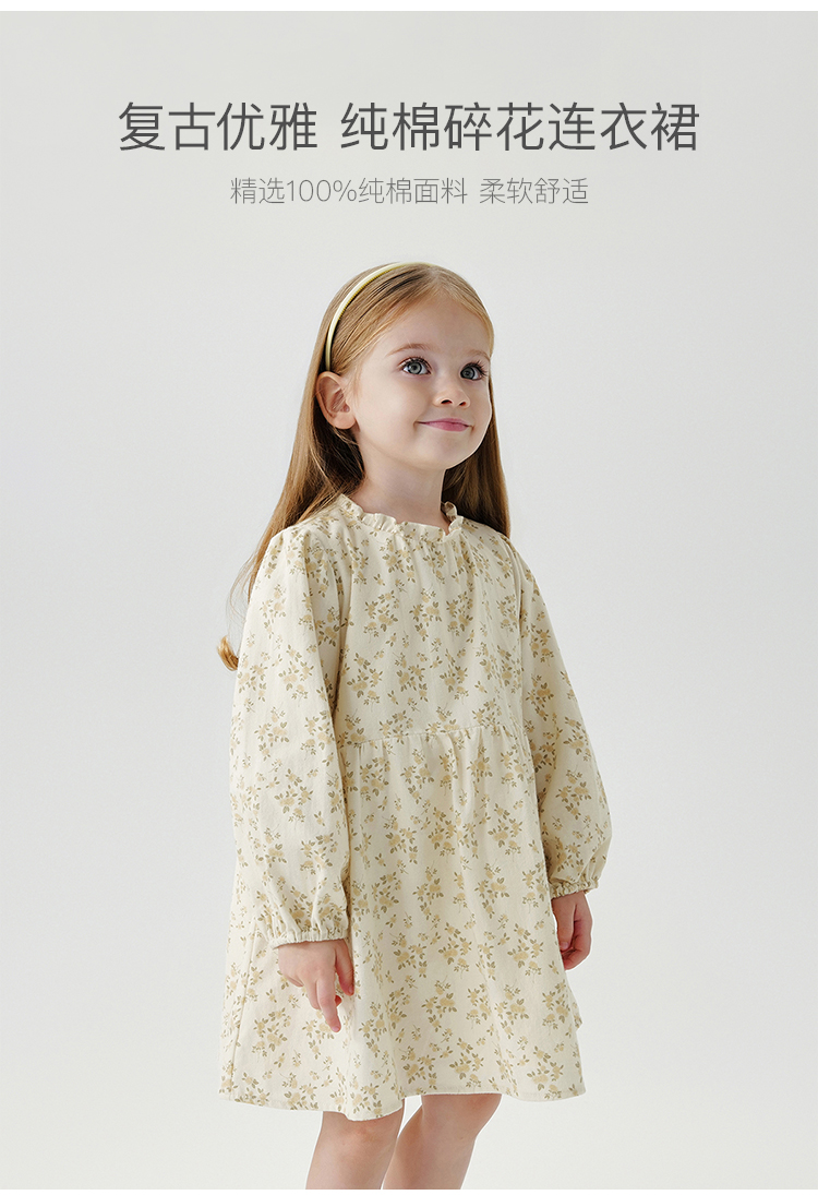 马克珍妮女童满底碎花连衣裙儿童裙子纯棉2024年秋装新款241102