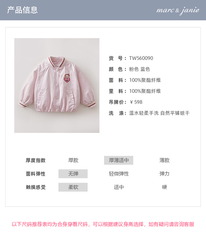 马克珍妮小熊乐园女童棒球服外套2026年春装新款560090