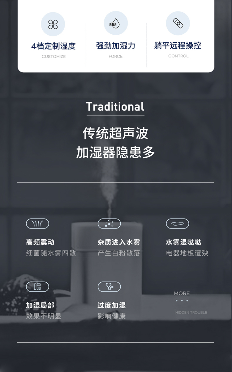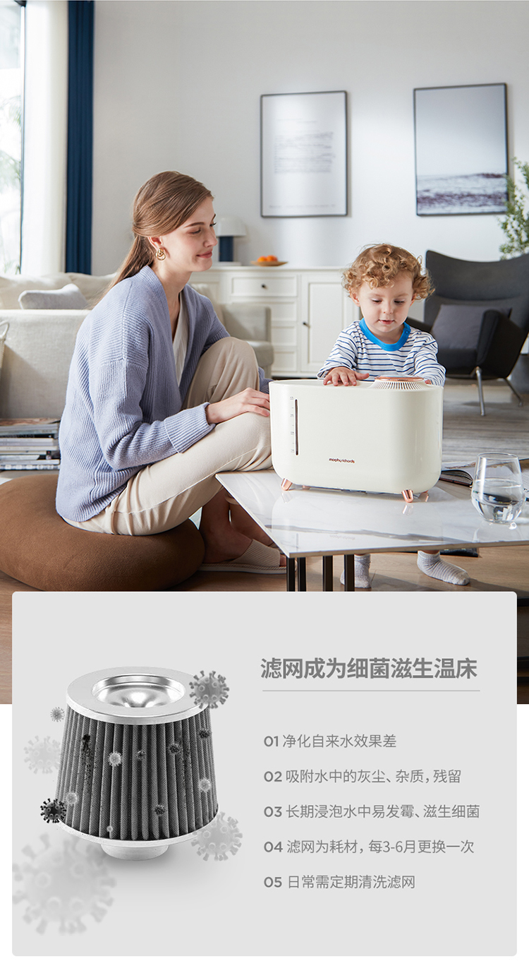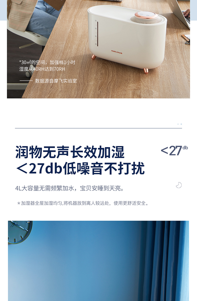 摩飞(Morphyrichards)无雾加湿器卧室家用办公室桌面孕妇婴儿低噪 4L大容量上加水遥控升级版MR2081