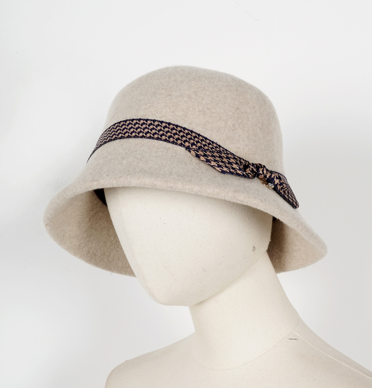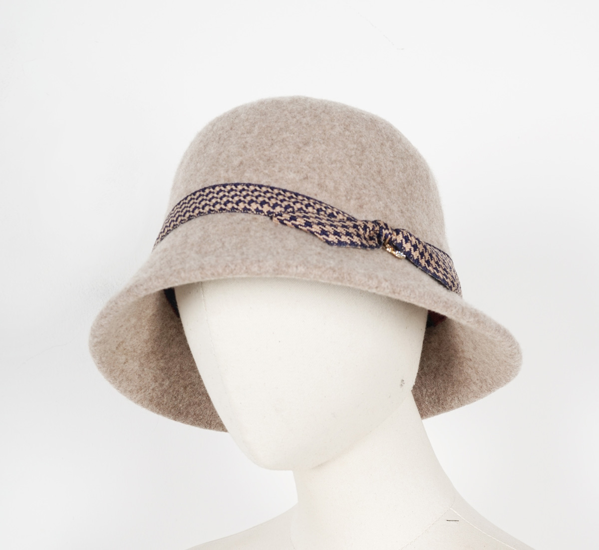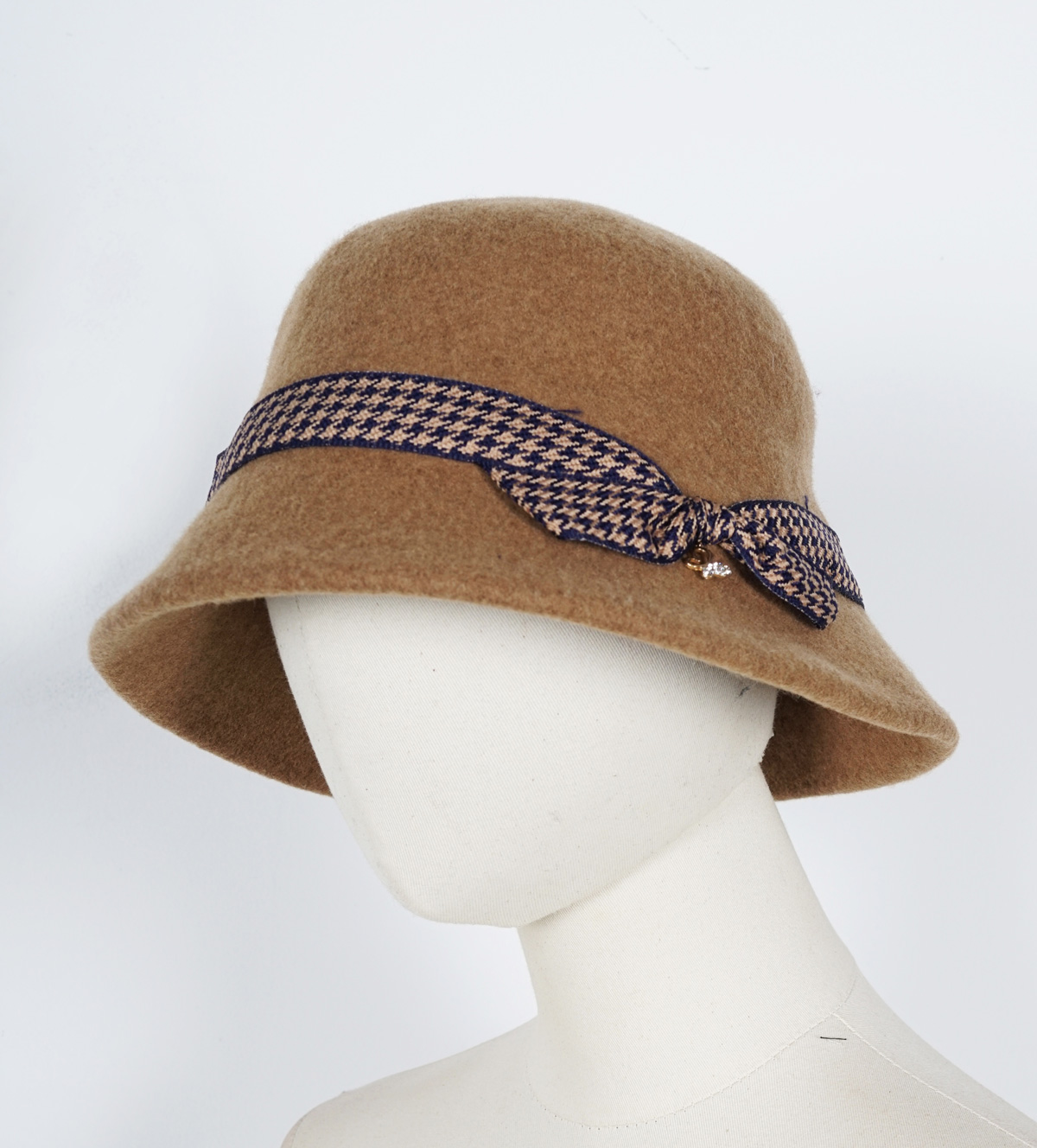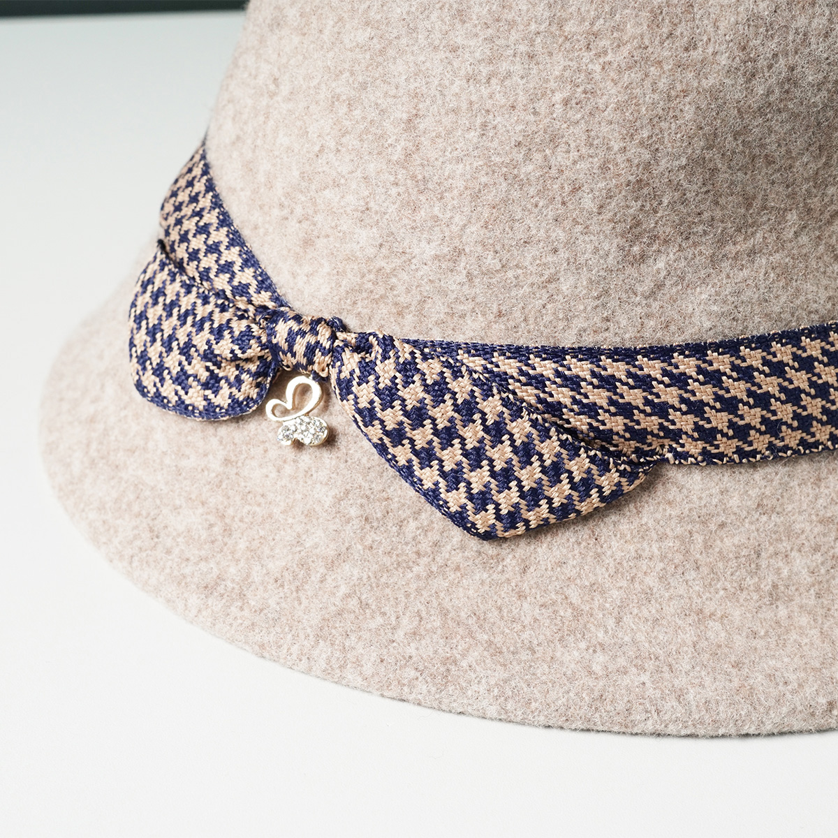 冬季保暖圆顶千鸟格装饰礼帽1022