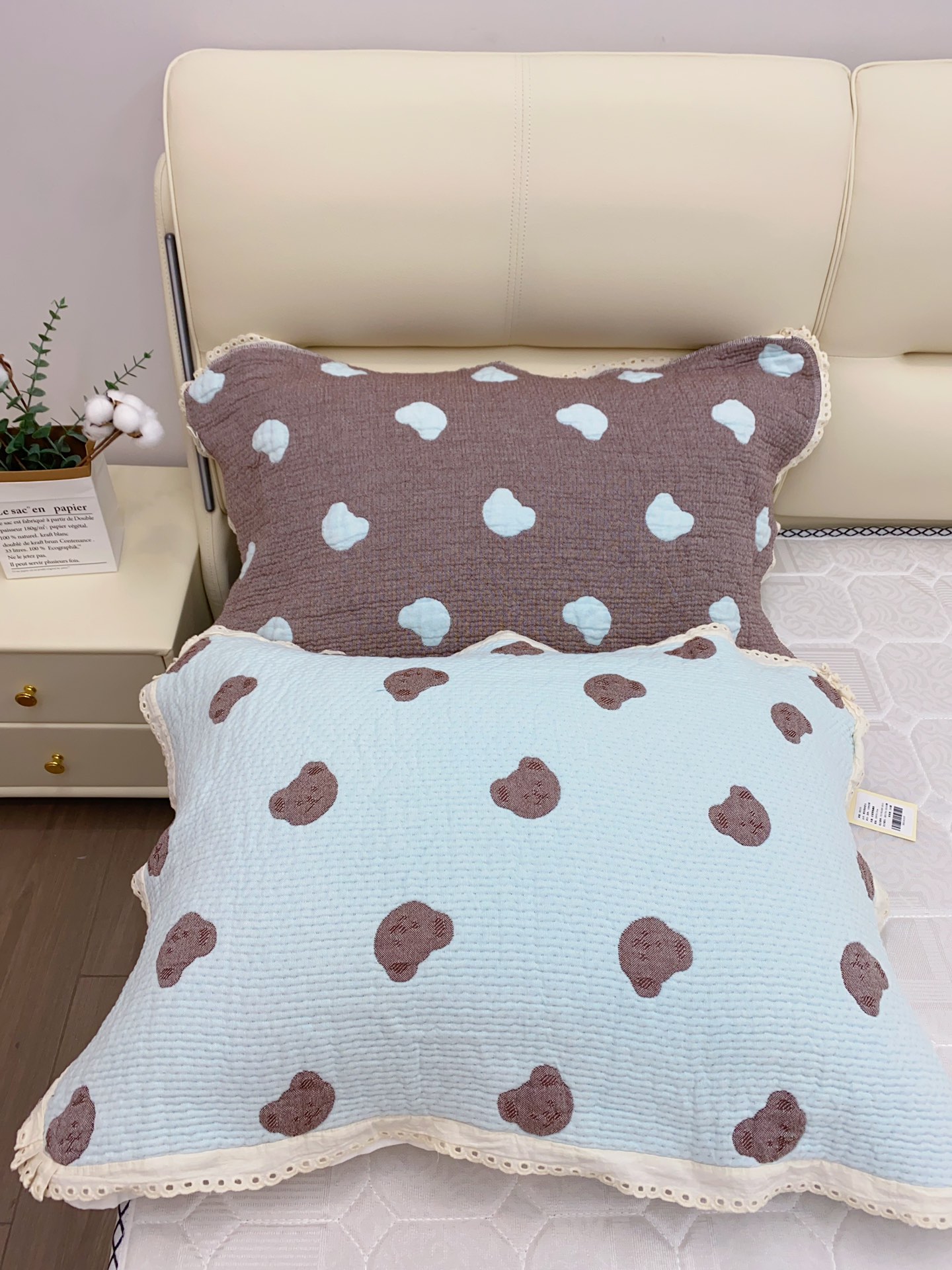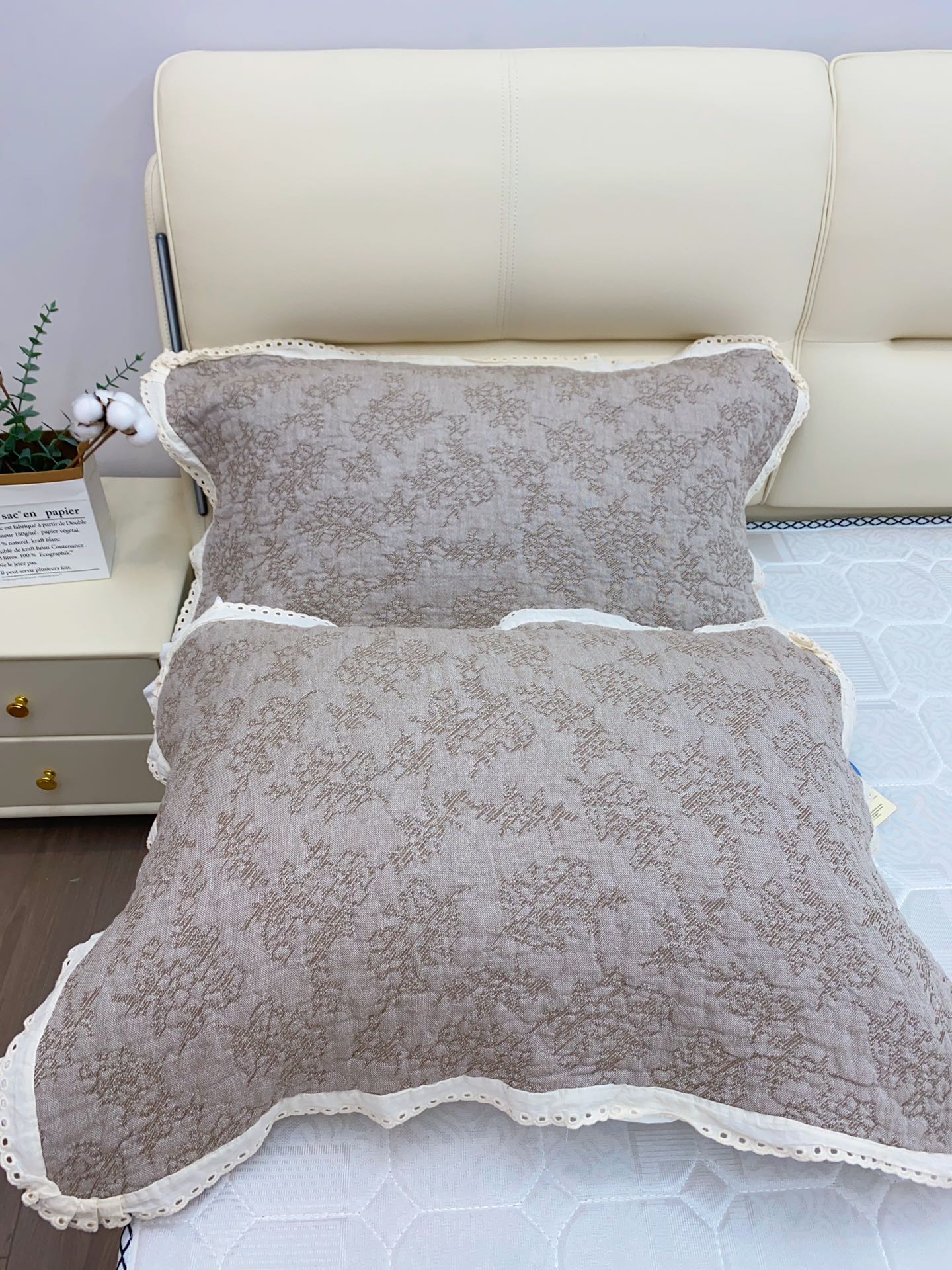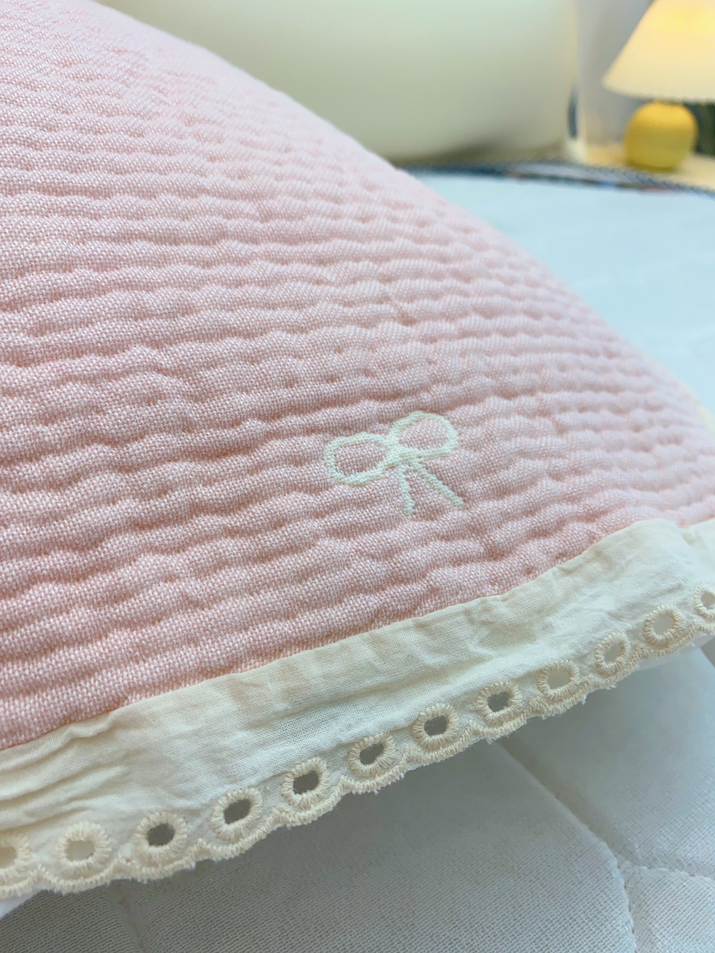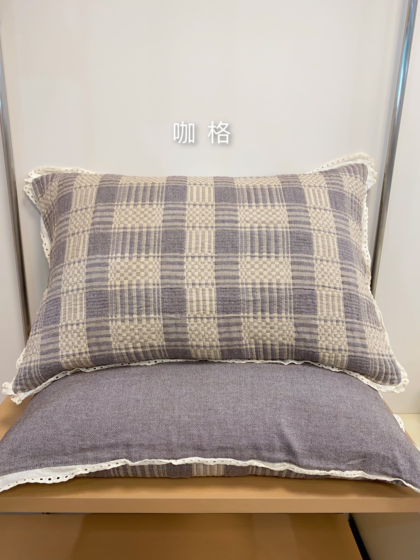 简约纯色、韩系花边纯棉纱布枕巾,吸湿透气,水洗色织蓬松棉软,AB两面可用,四季可用