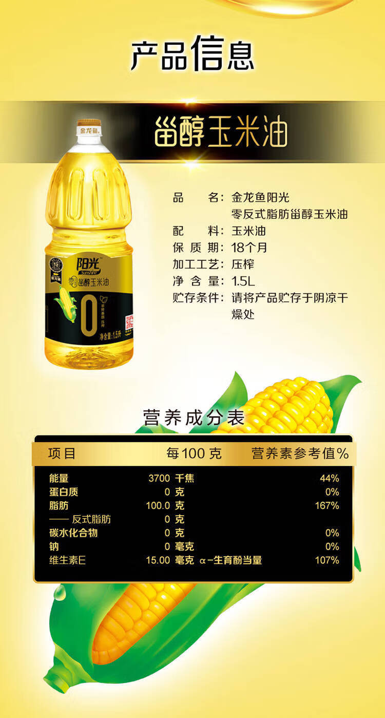 金龙鱼阳光零反式脂肪甾醇玉米油1.5LX1桶
