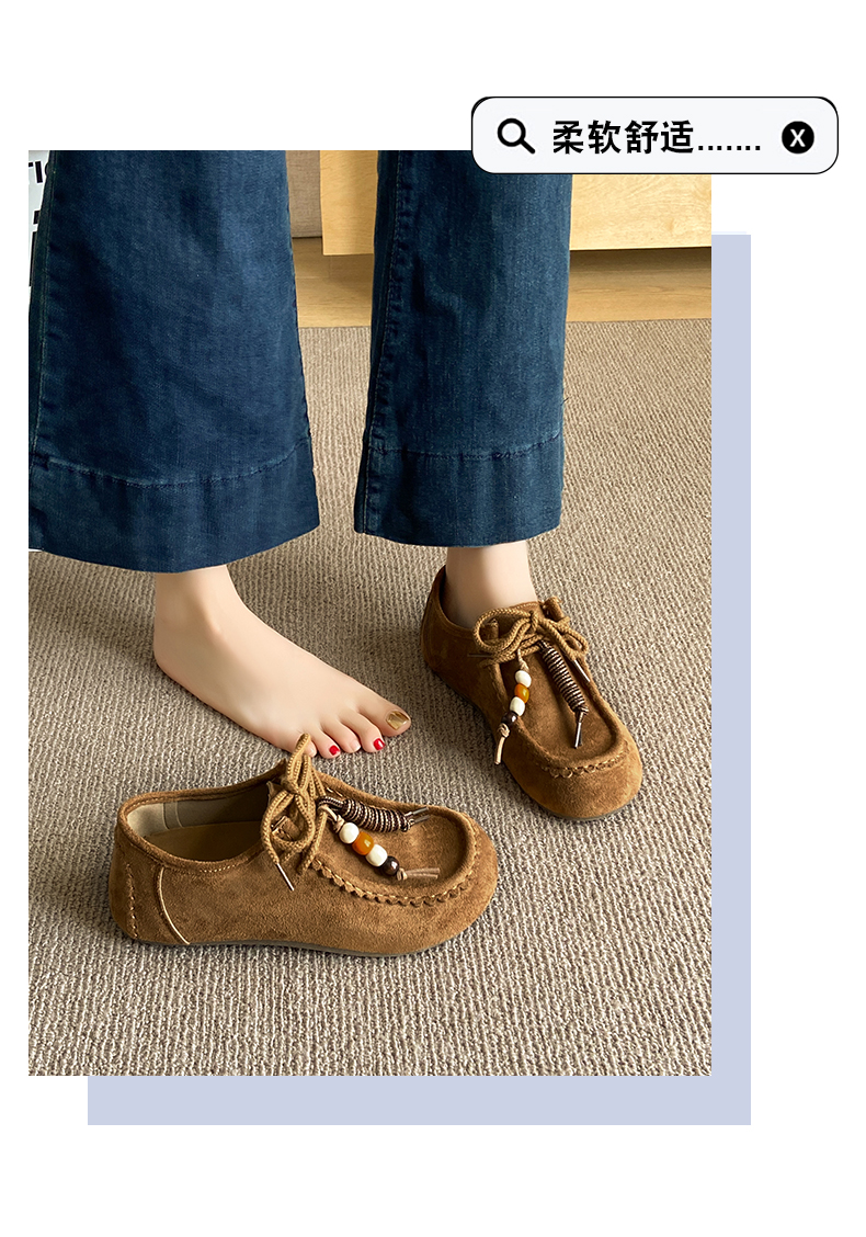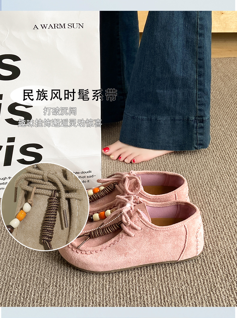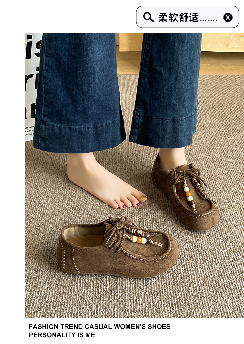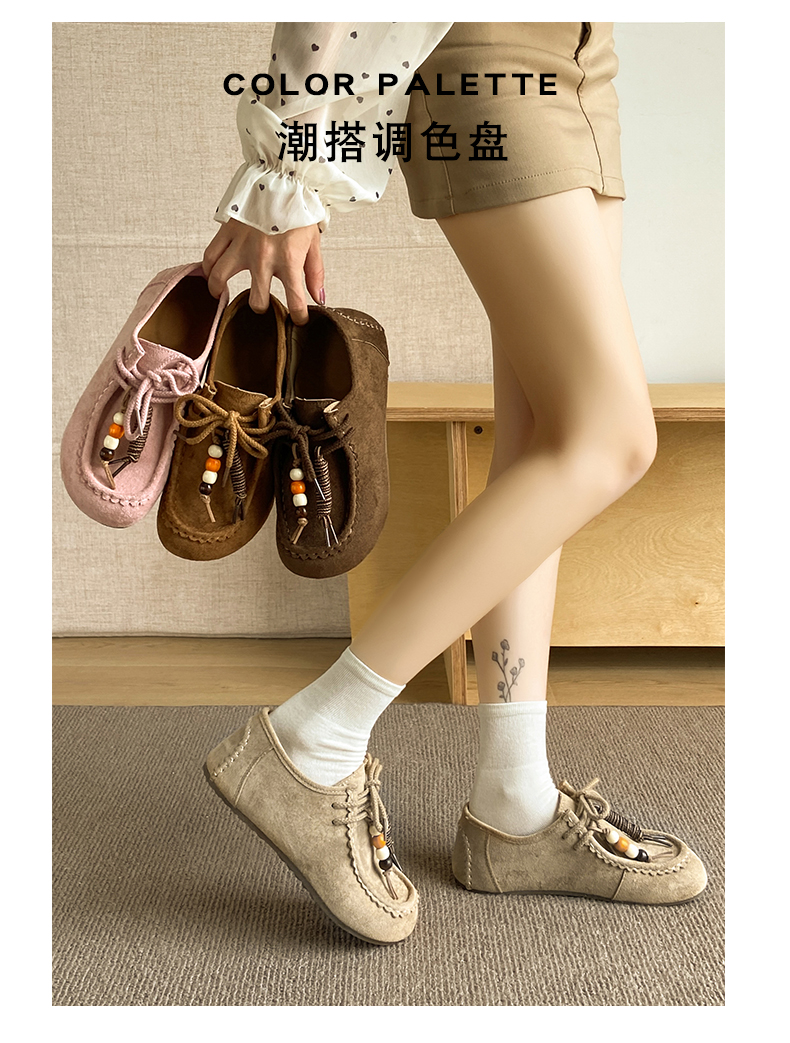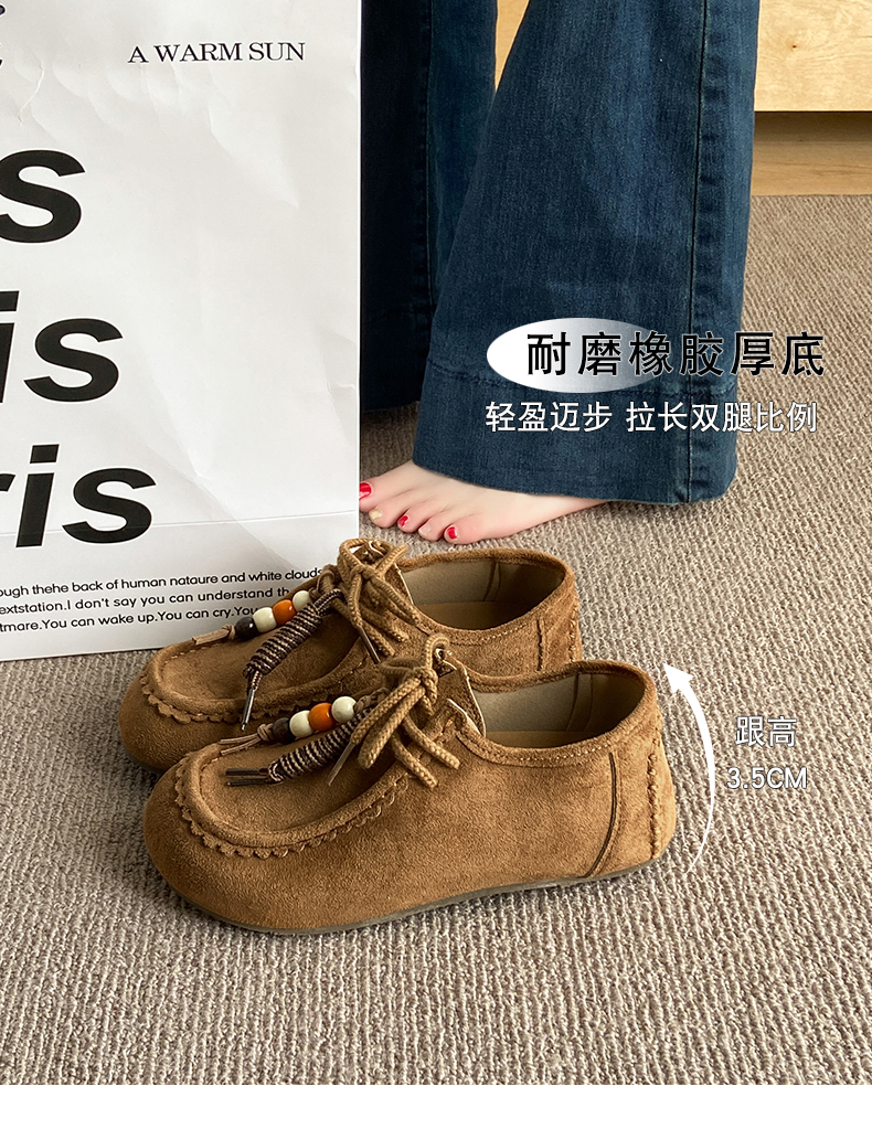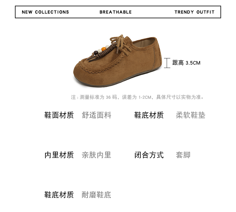 【特妮娜 森系串珠单鞋】柔软舒适鞋面 民族风系带 耐磨橡胶厚底 隐形增高3.5CM 搭衣服不伤脑筋 自然不紧绷F132