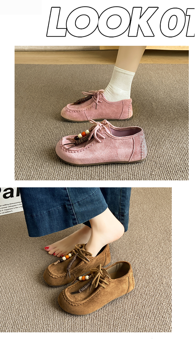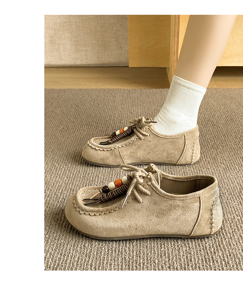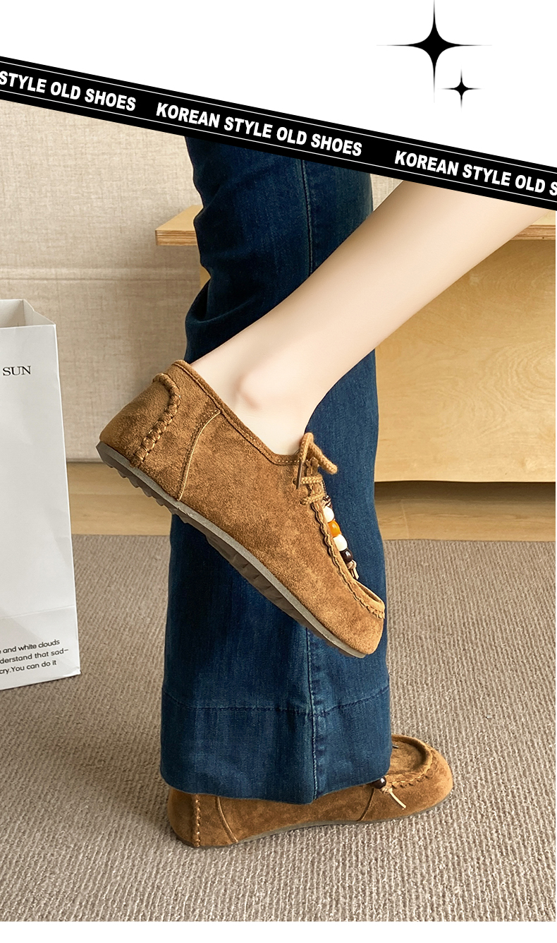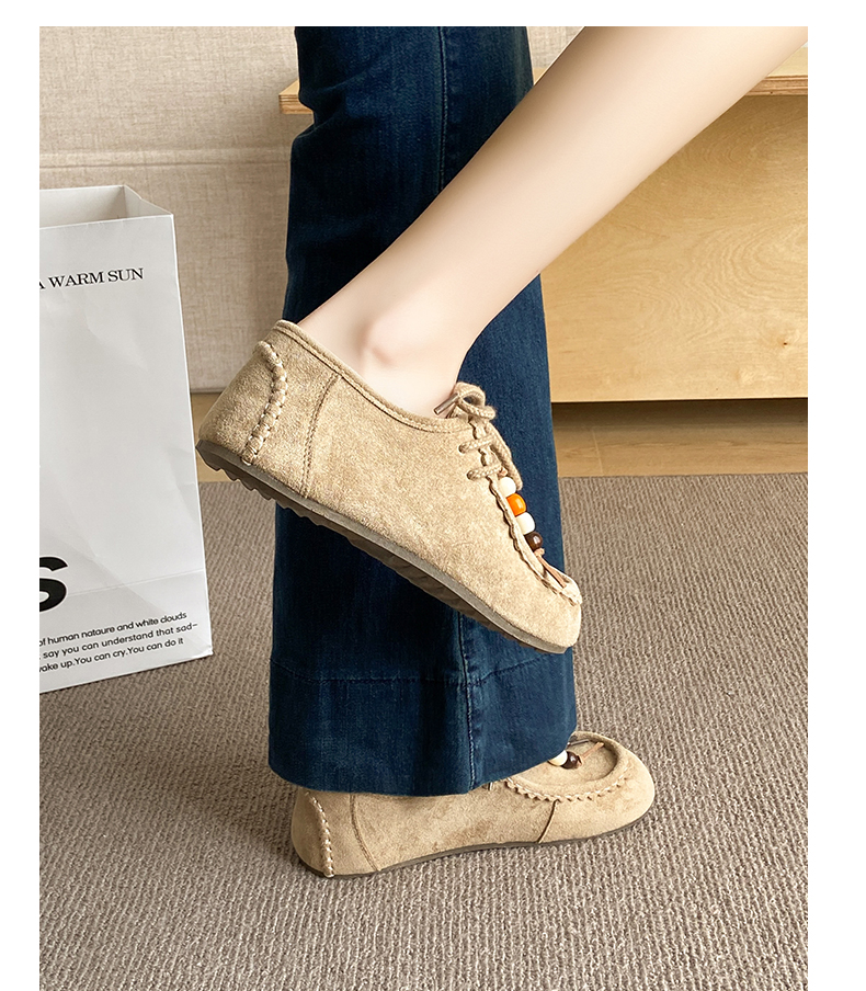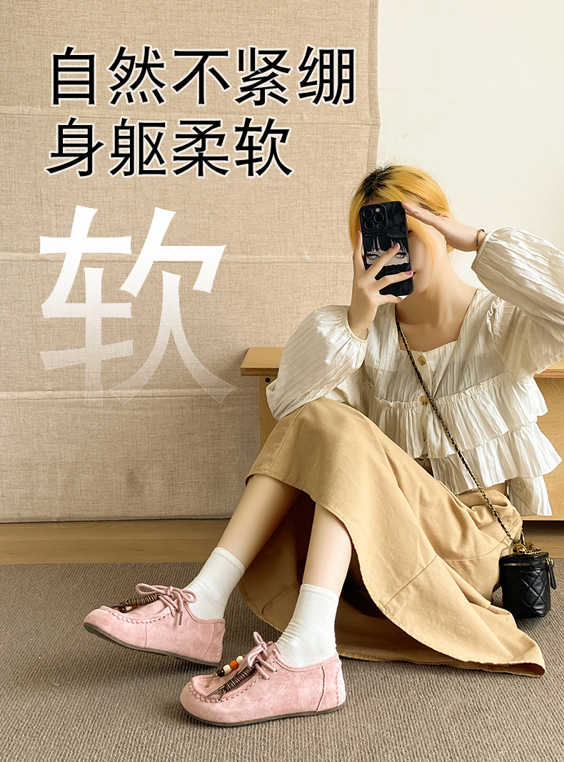 【特妮娜 森系串珠单鞋】柔软舒适鞋面 民族风系带 耐磨橡胶厚底 隐形增高3.5CM 搭衣服不伤脑筋 自然不紧绷F132