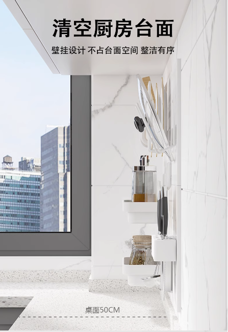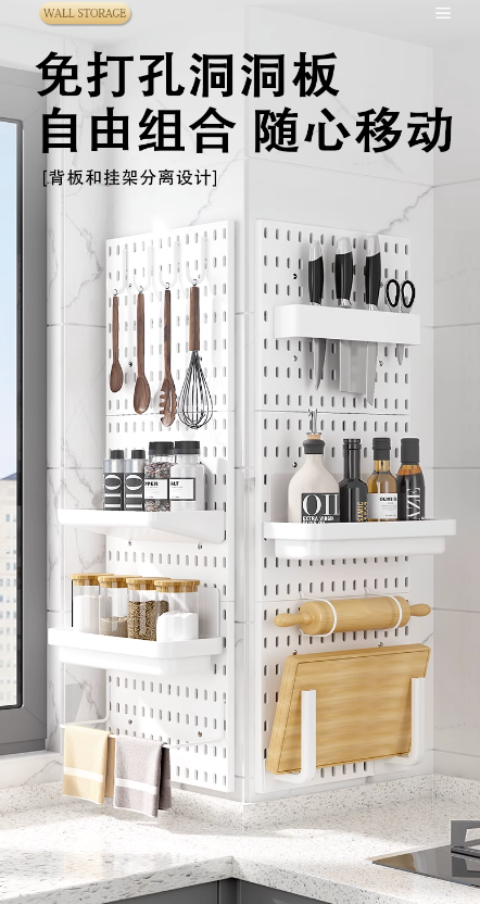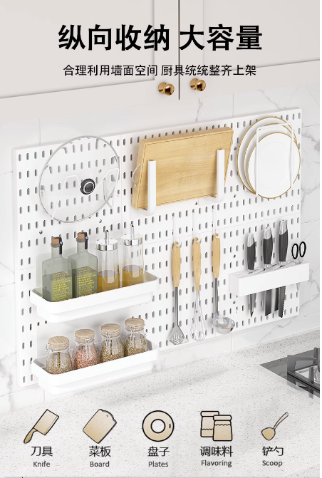 免打孔厨房洞洞板 置物架调料架刀架锅盖架挂钩墙上收纳2.66