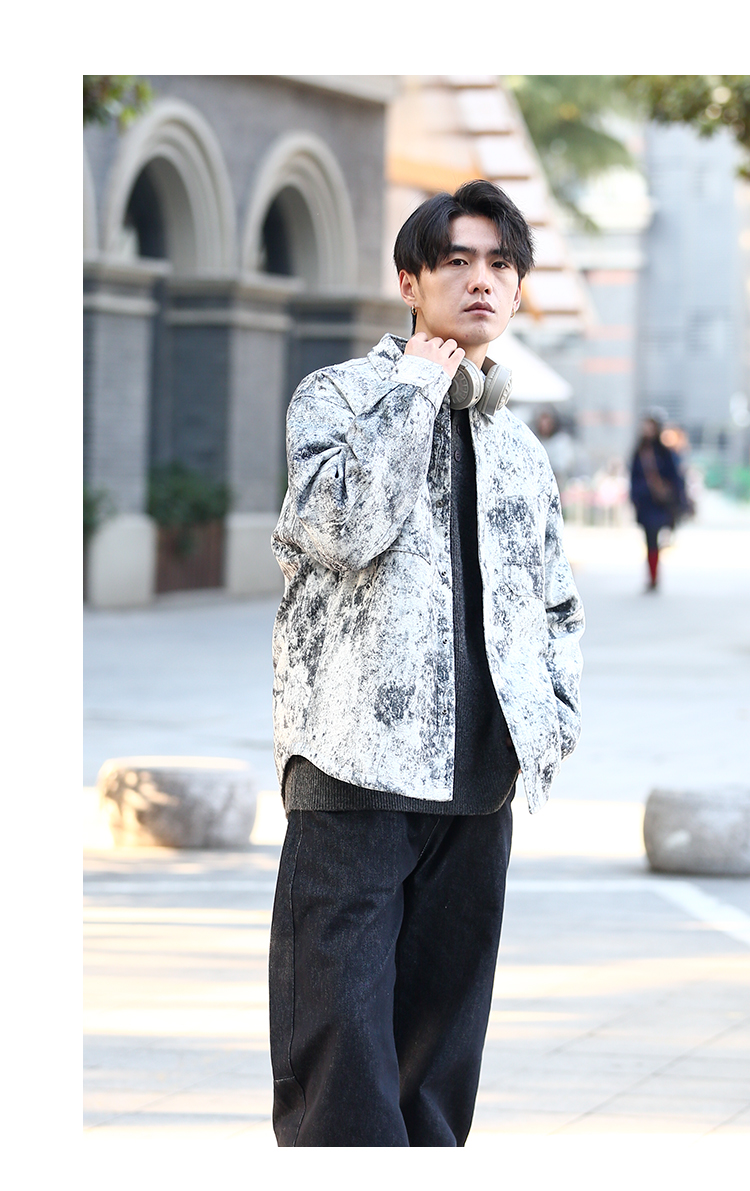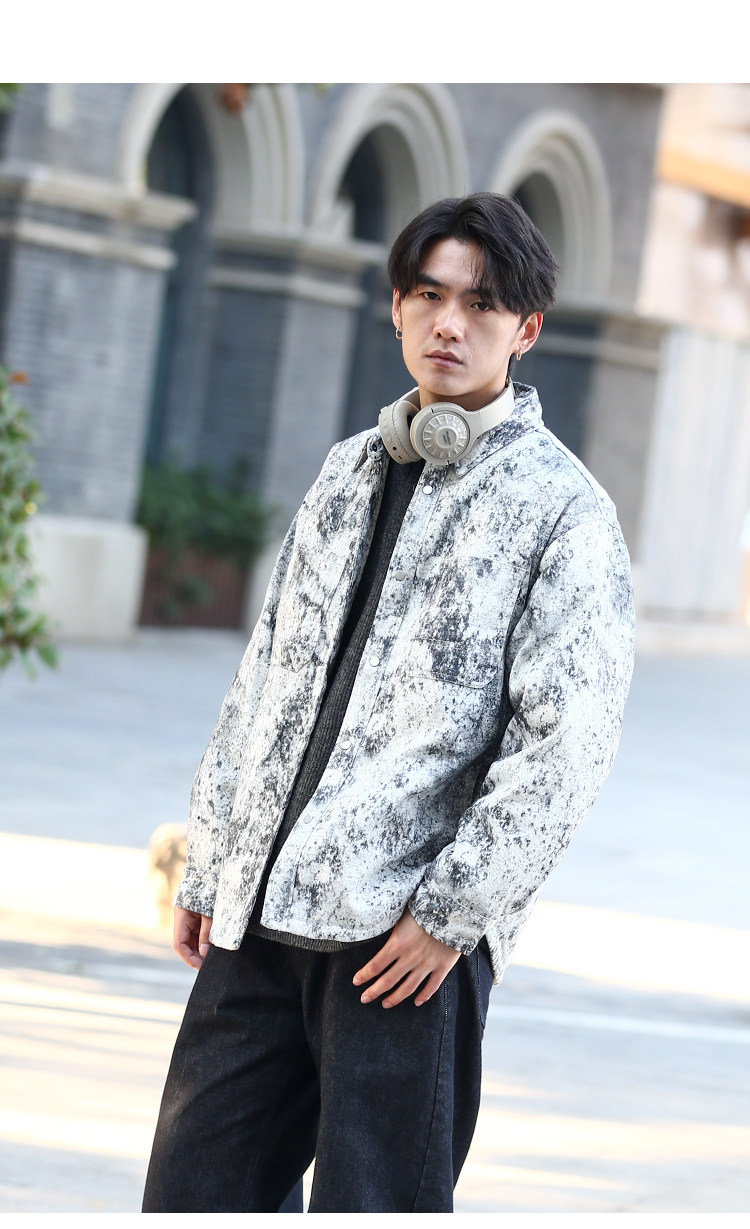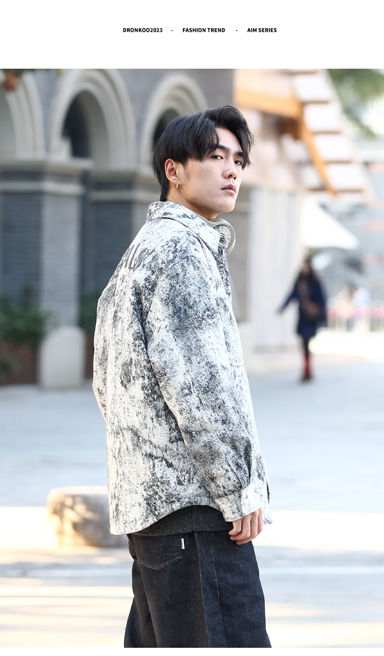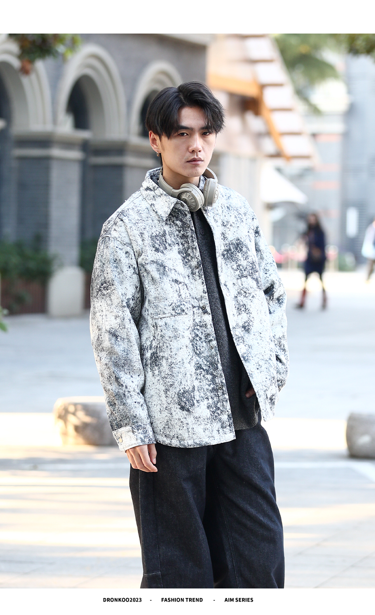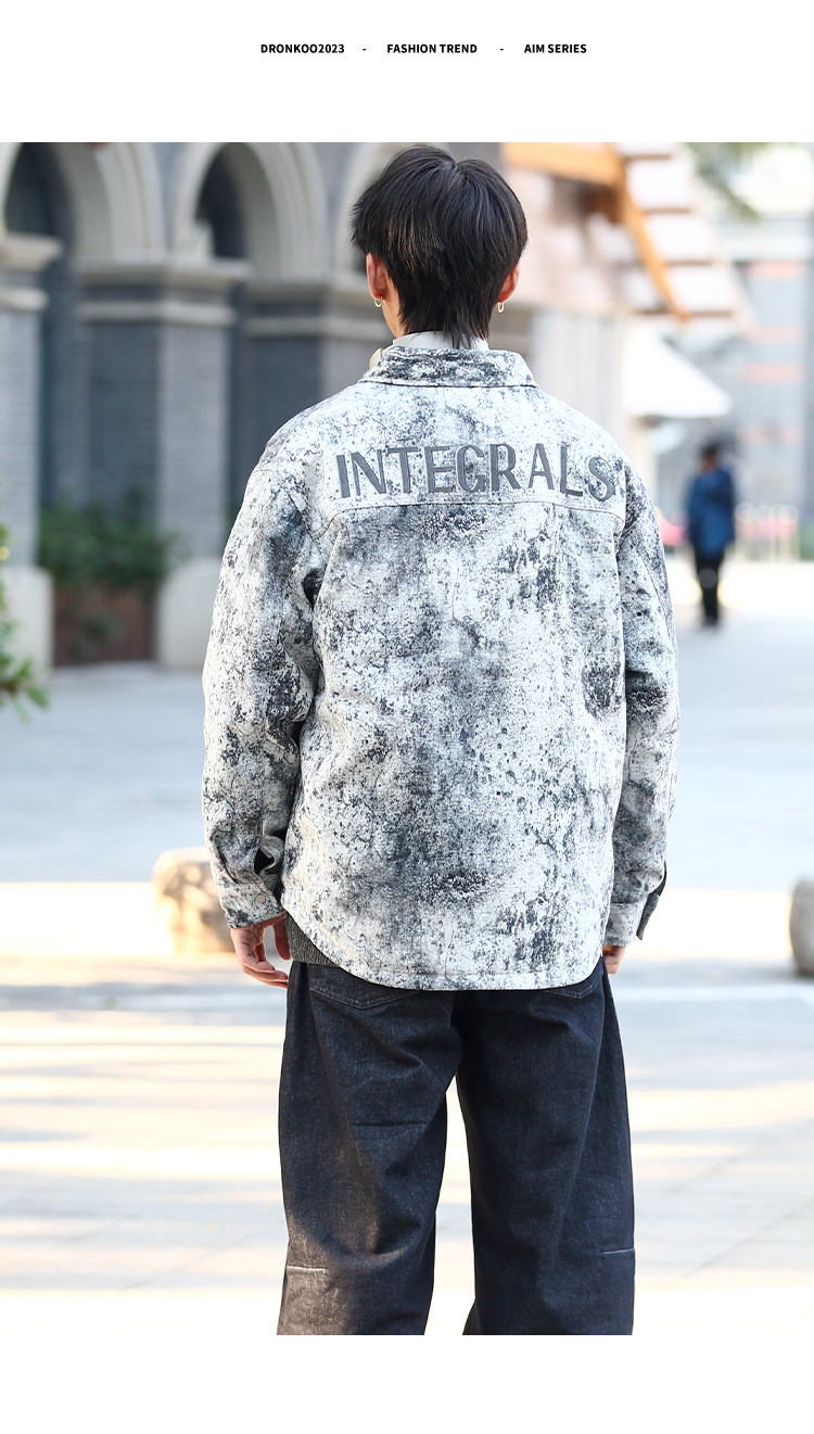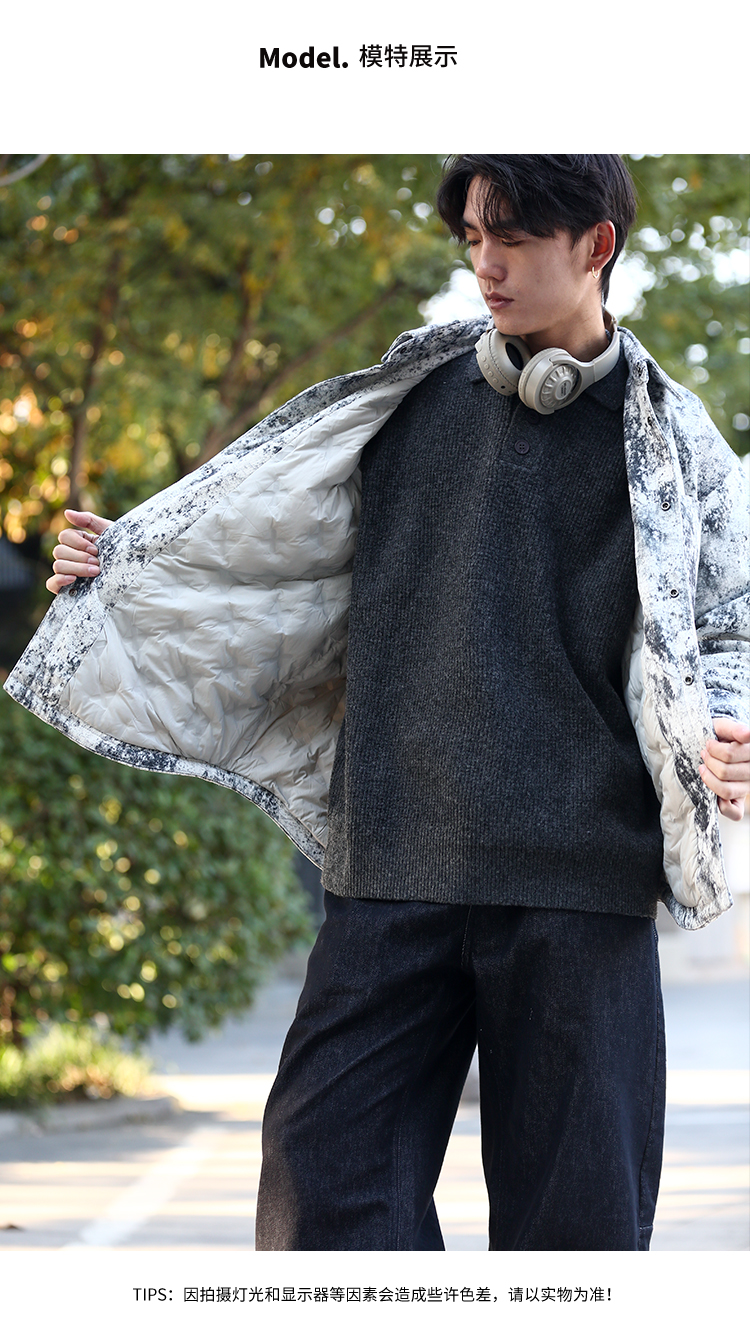 DRONKOO 2025 翻领后幅刺绣字母泼墨效果衬衫短款薄羽绒服