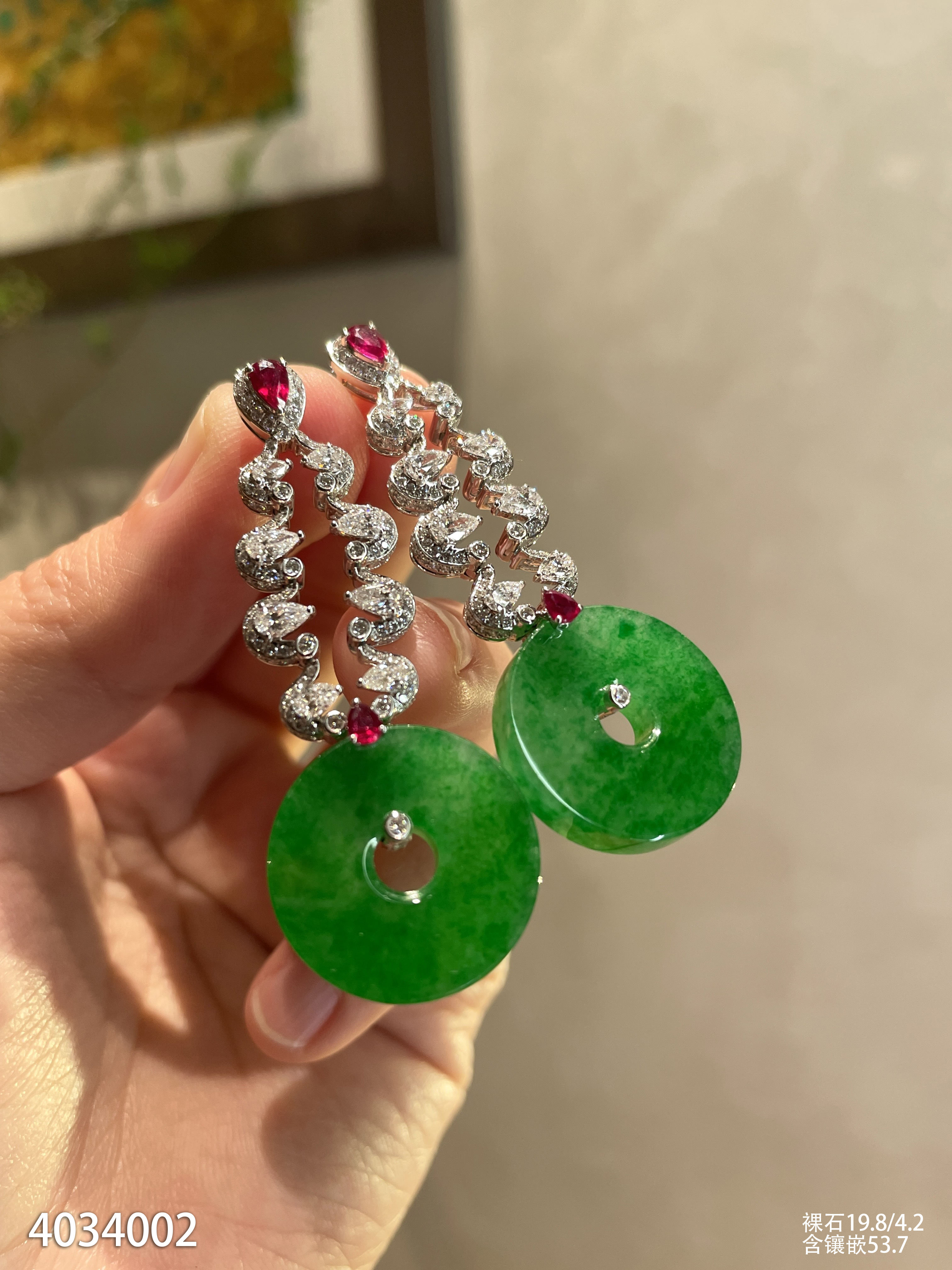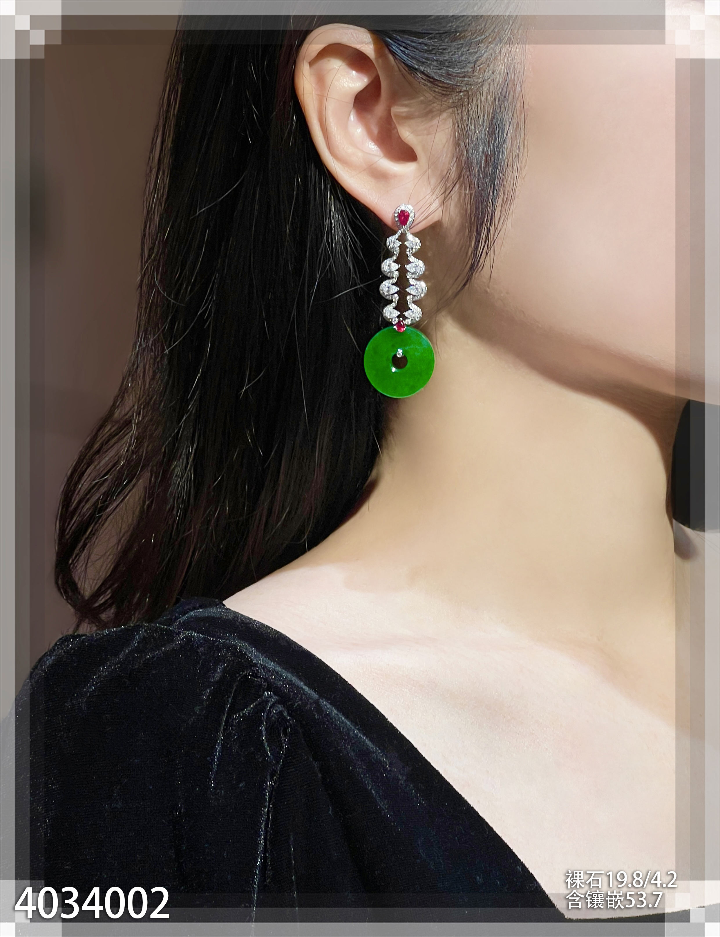 阳艳绿平安扣耳坠【4034002】具体价格微信咨询