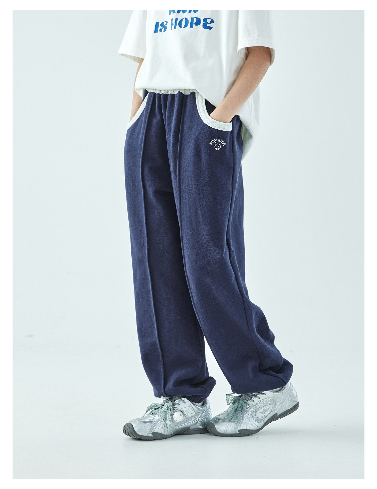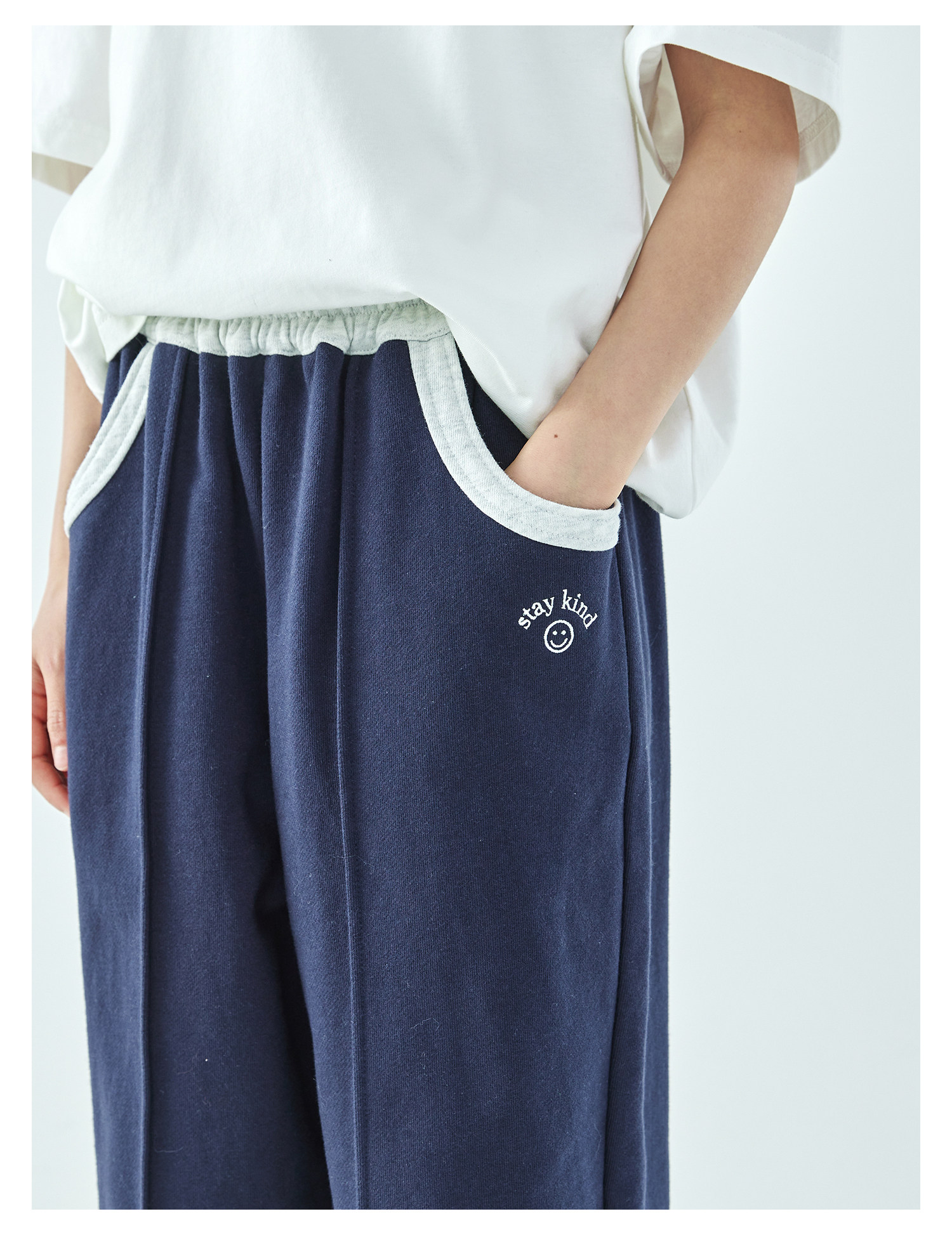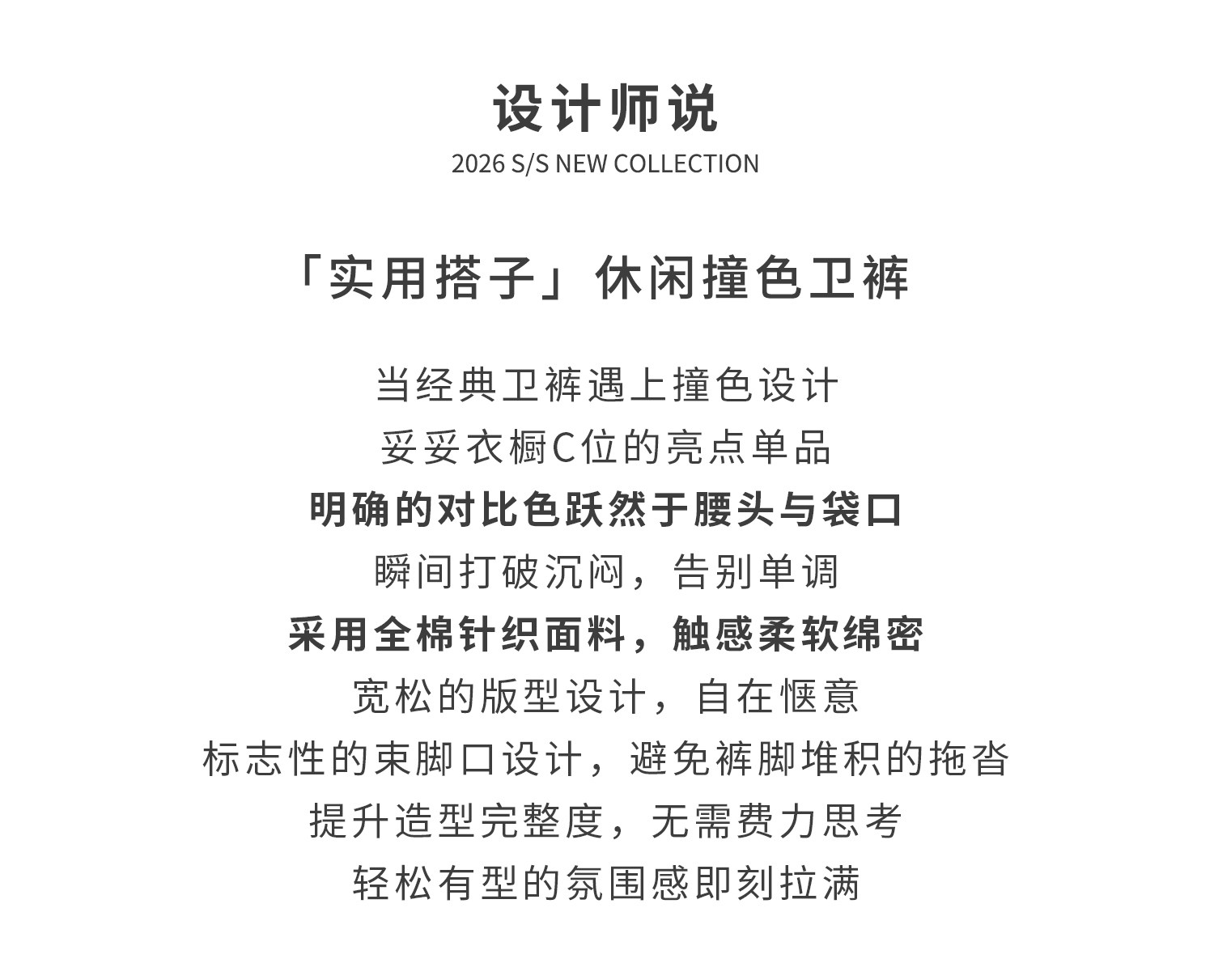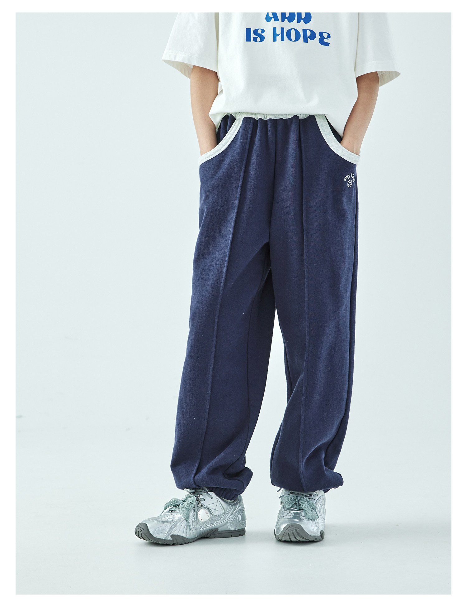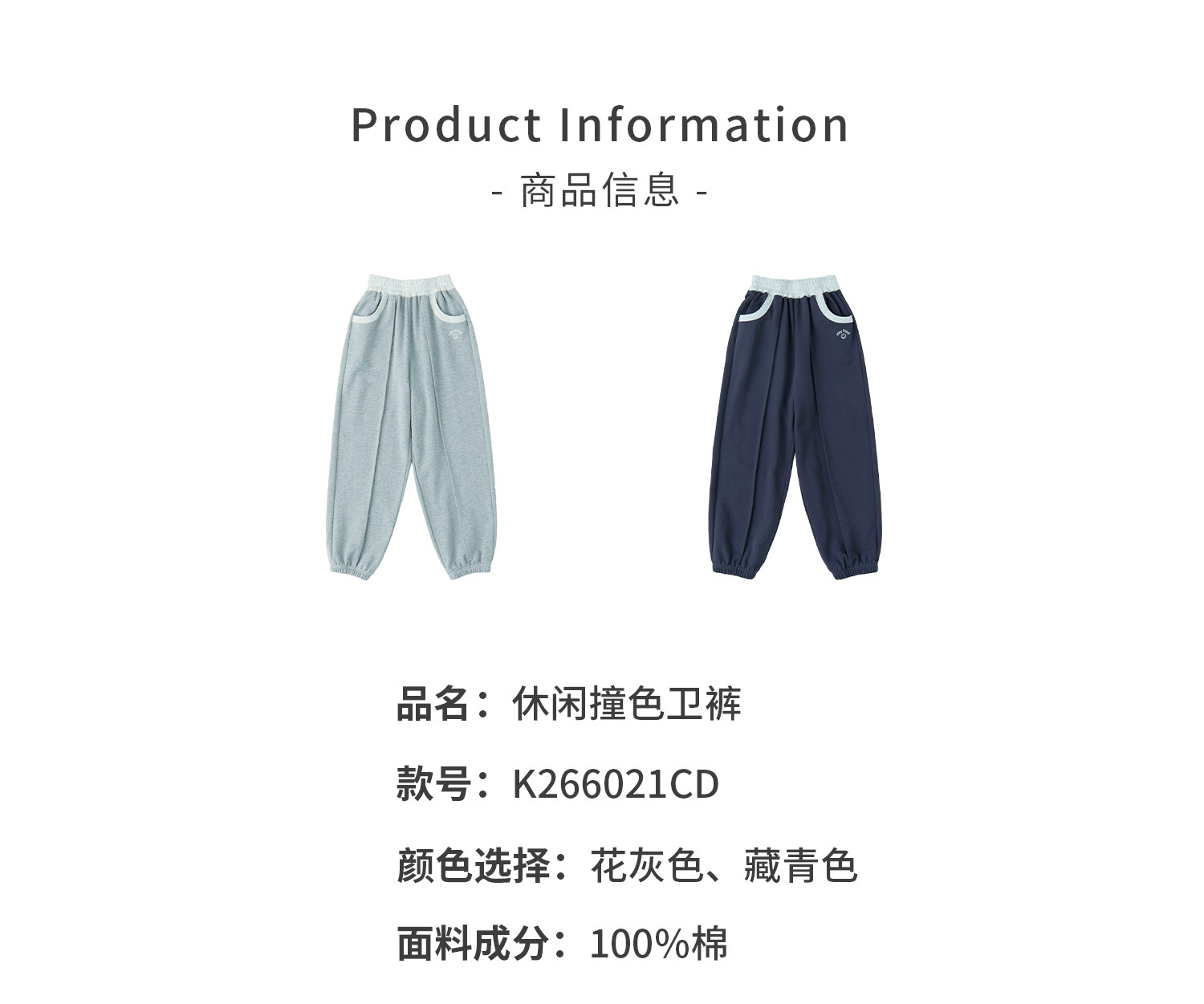 棵初2026年春季新款亲子中大女童经典撞色休闲卫裤纯棉宽松束脚裤