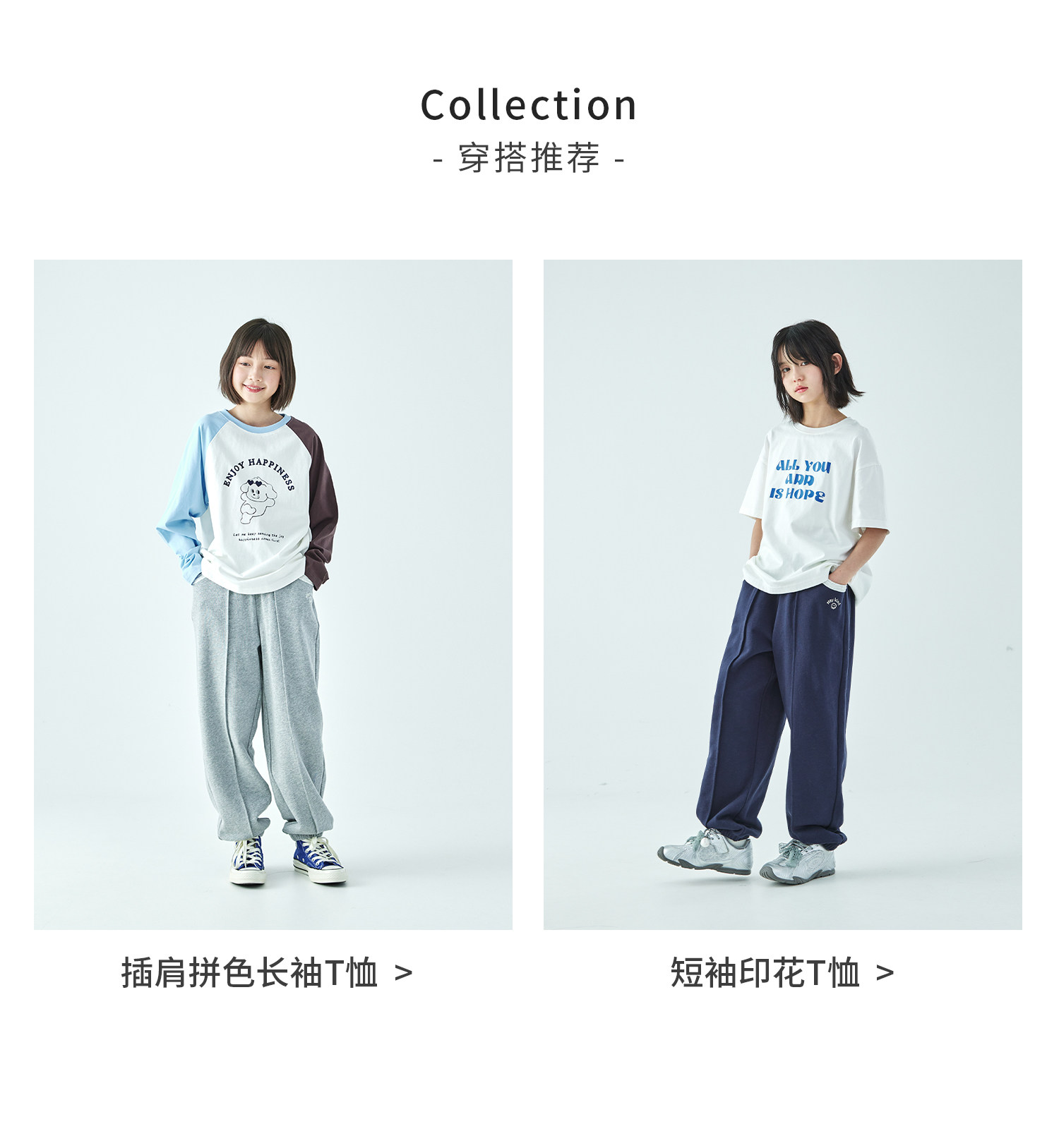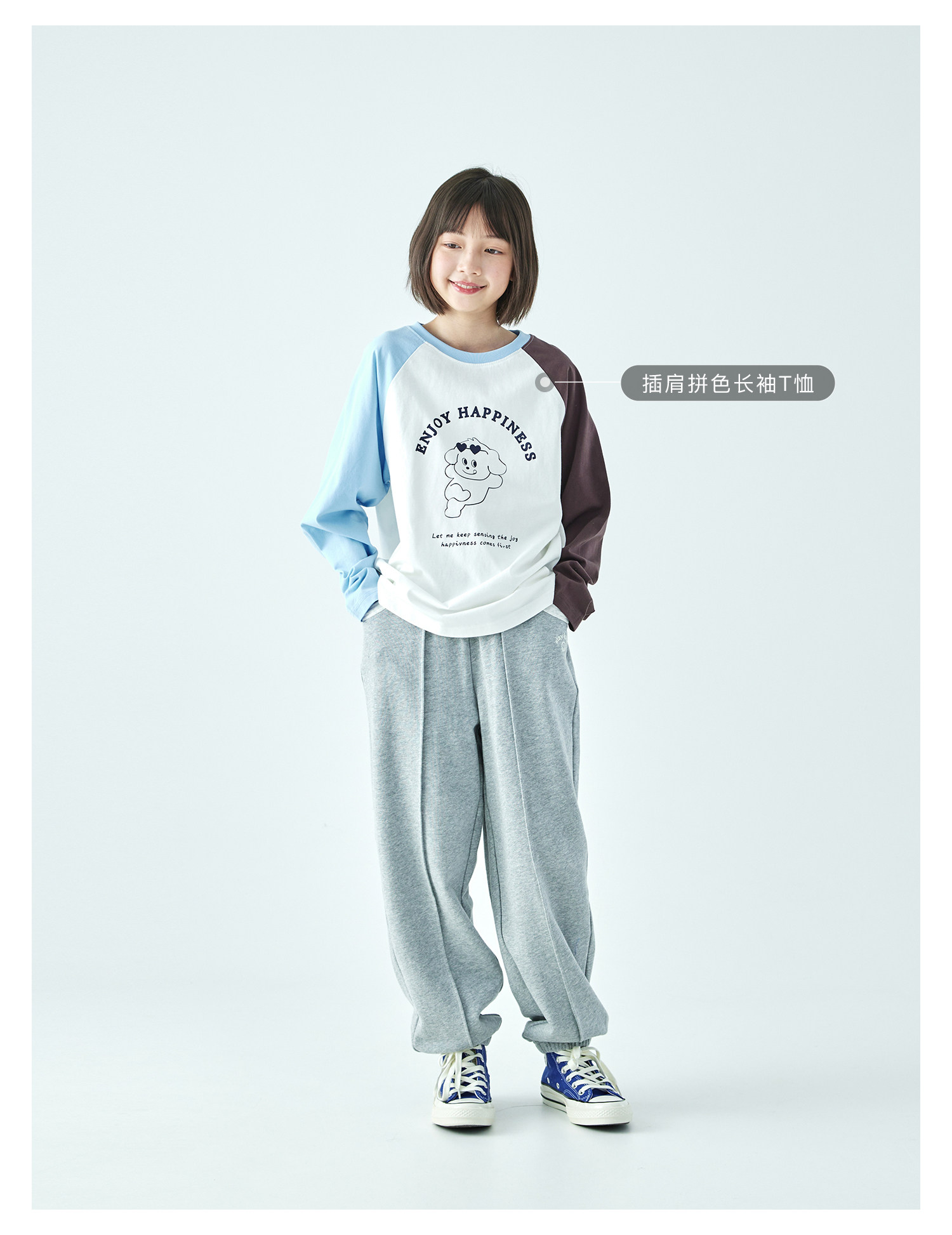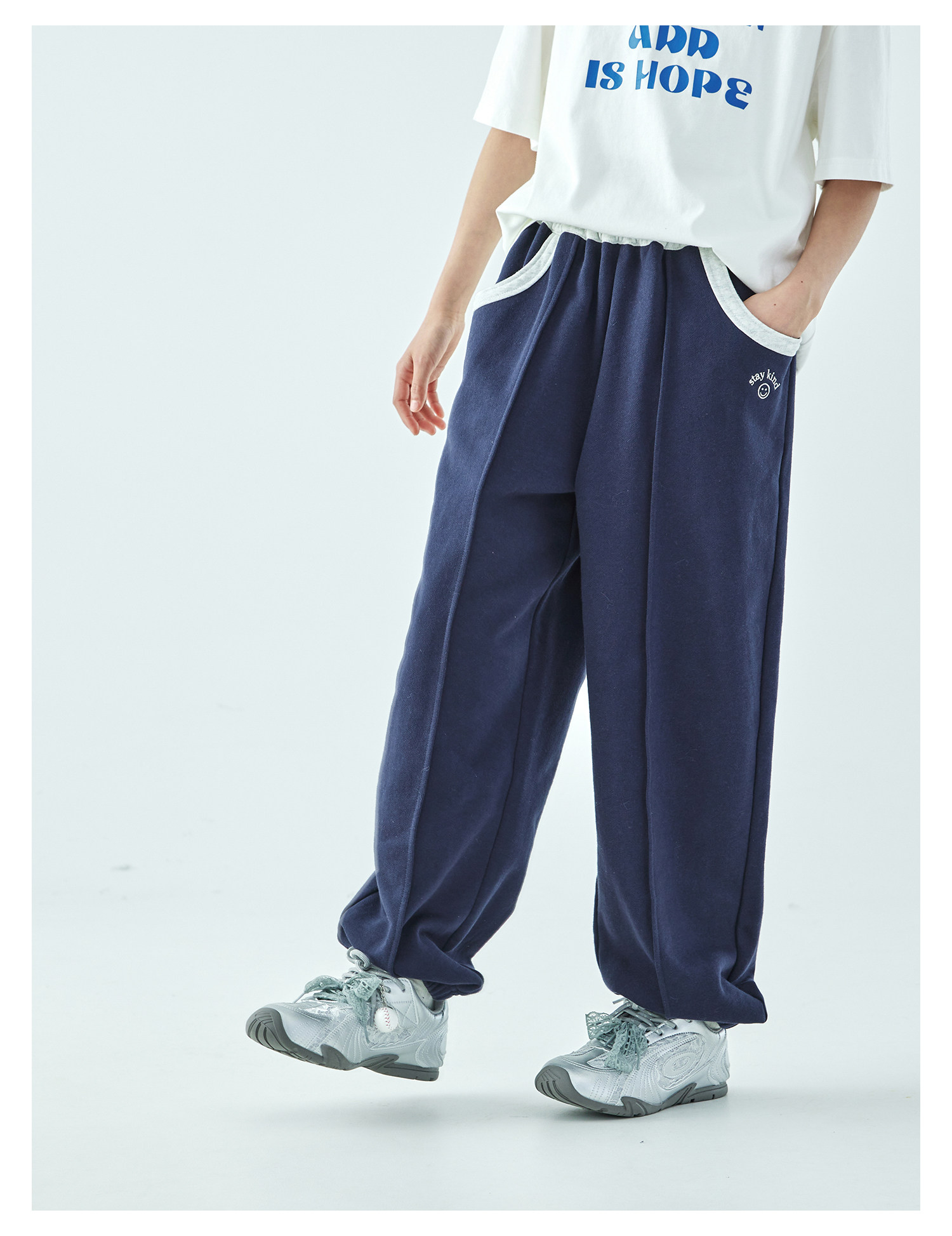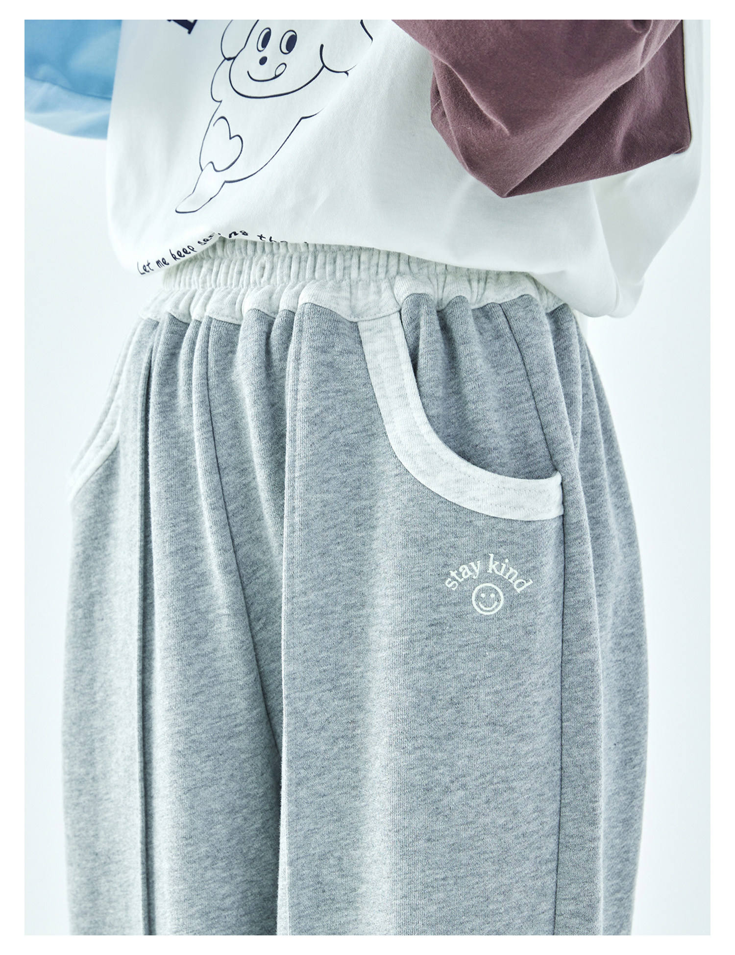 棵初2026年春季新款亲子中大女童经典撞色休闲卫裤纯棉宽松束脚裤