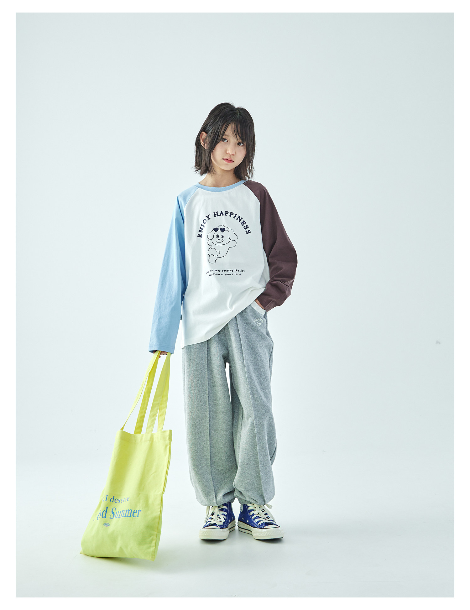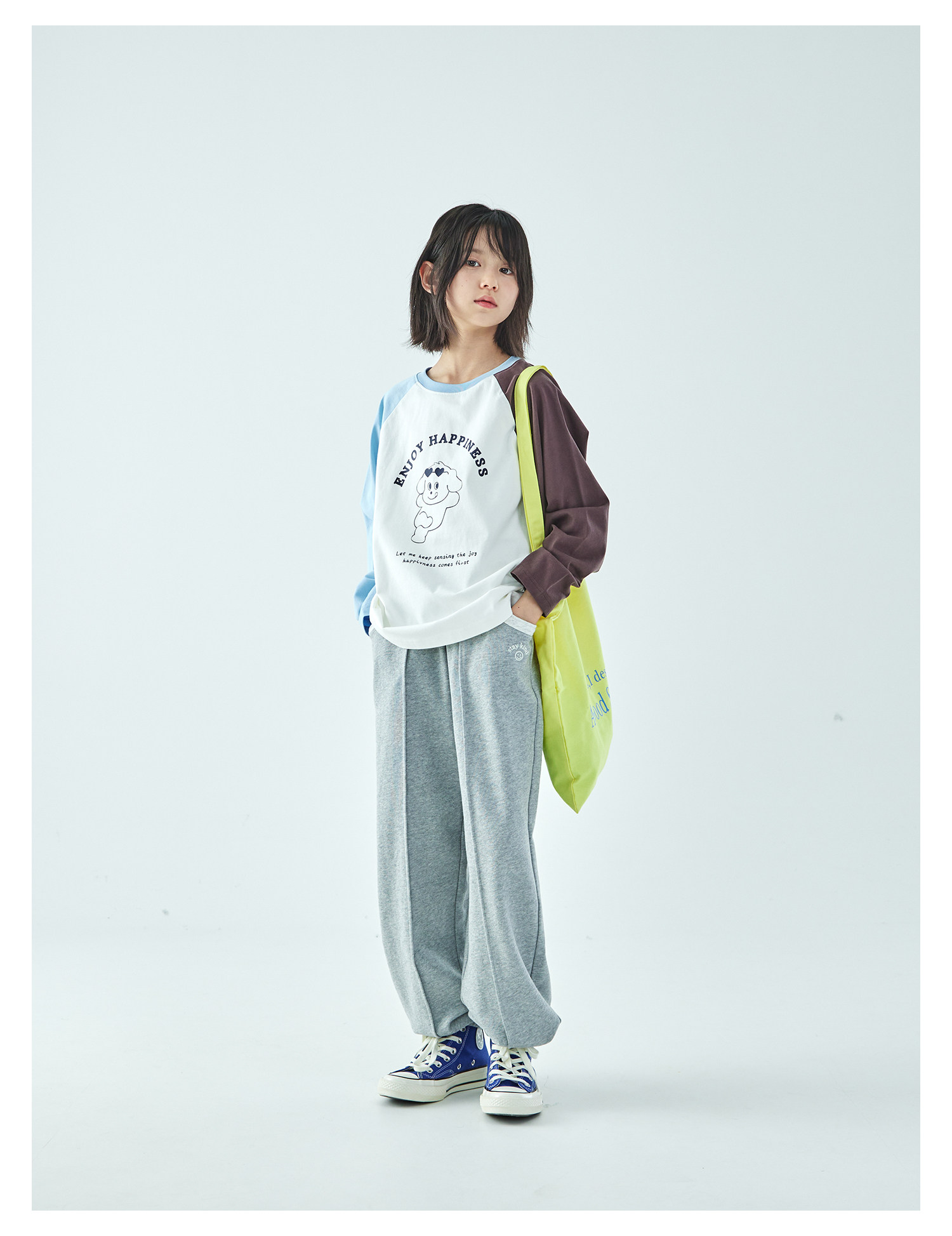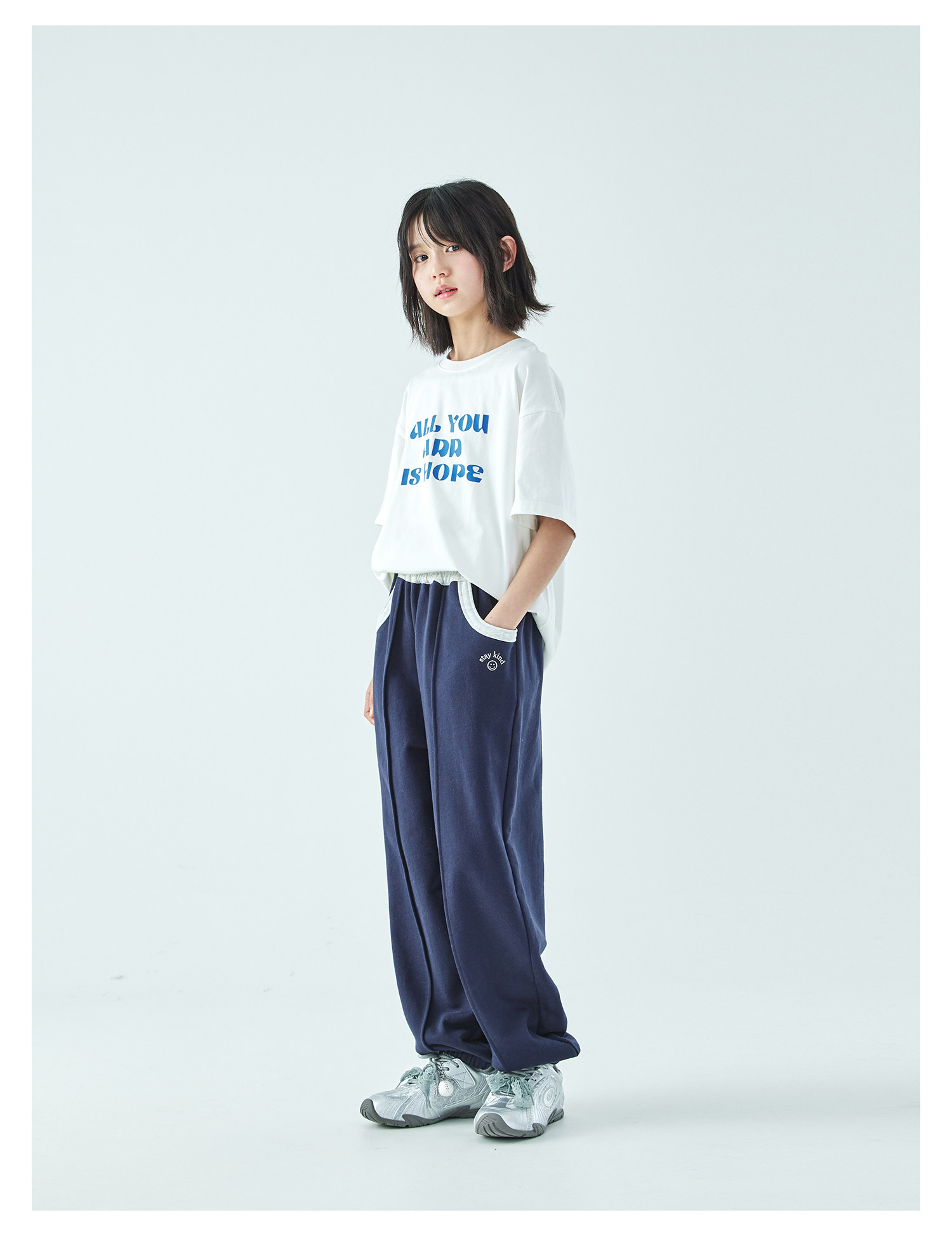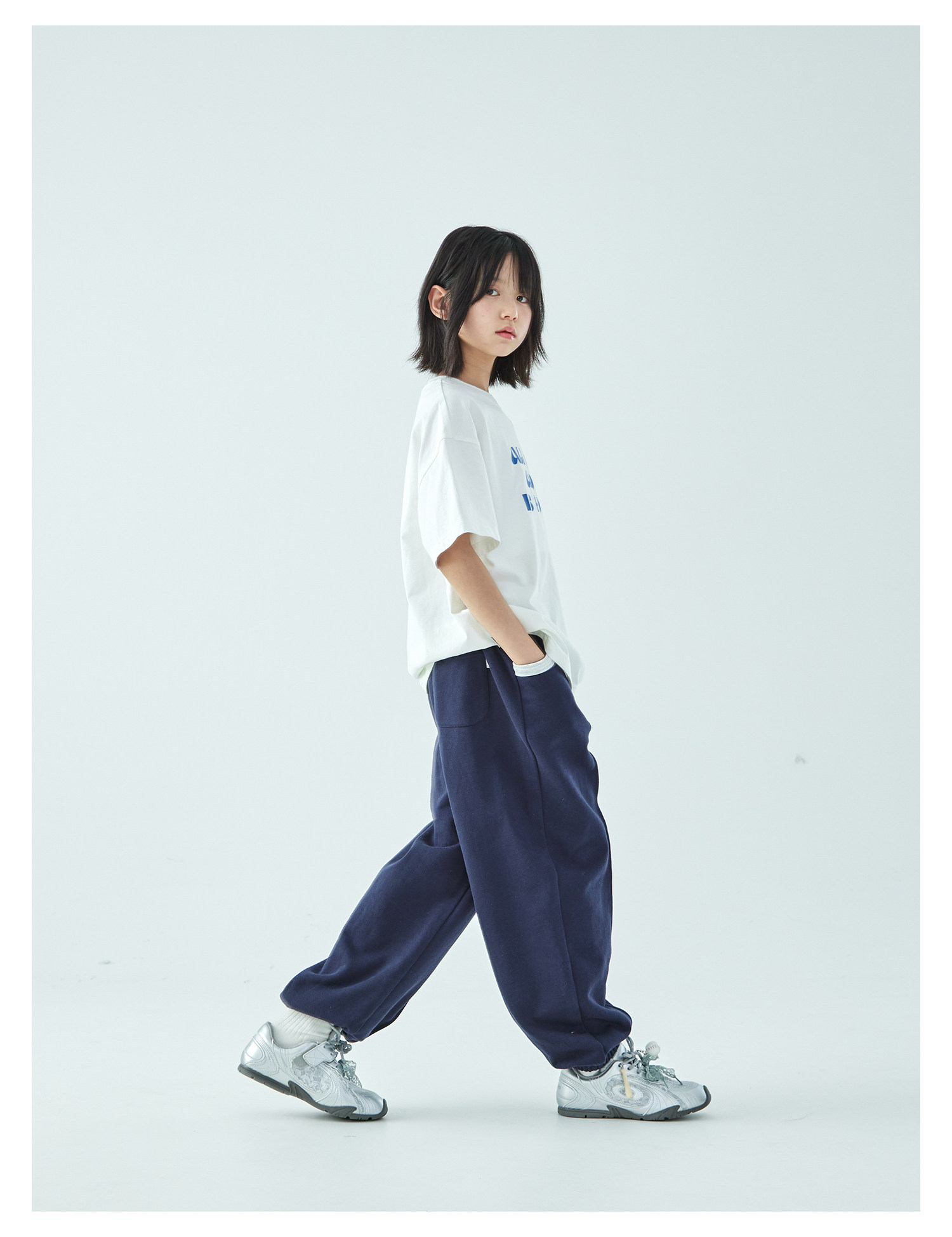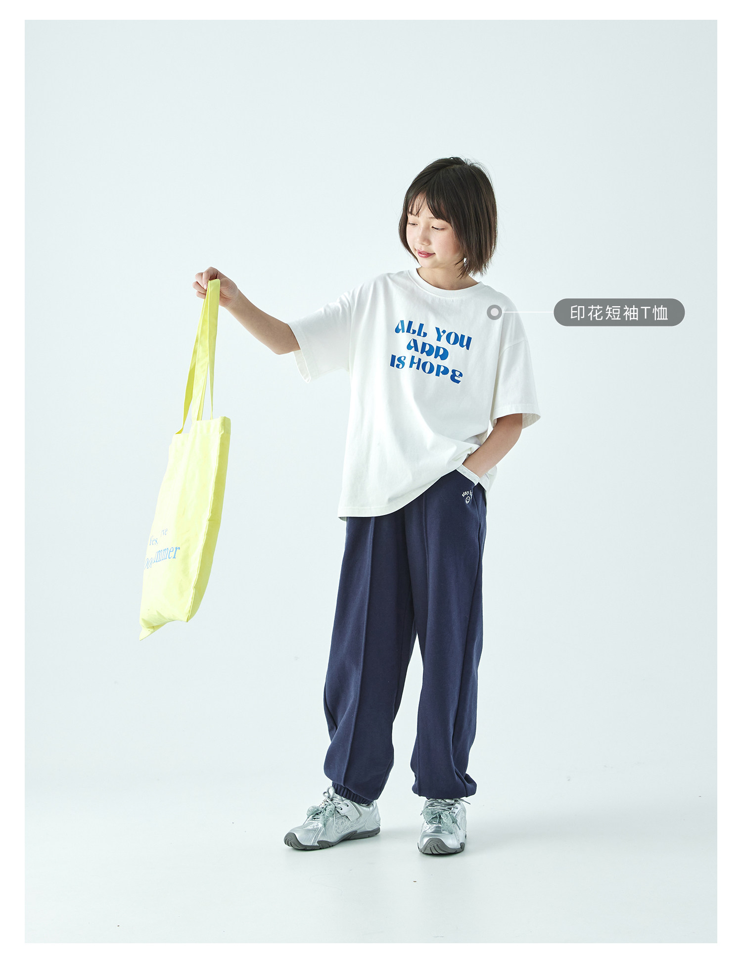 棵初2026年春季新款亲子中大女童经典撞色休闲卫裤纯棉宽松束脚裤