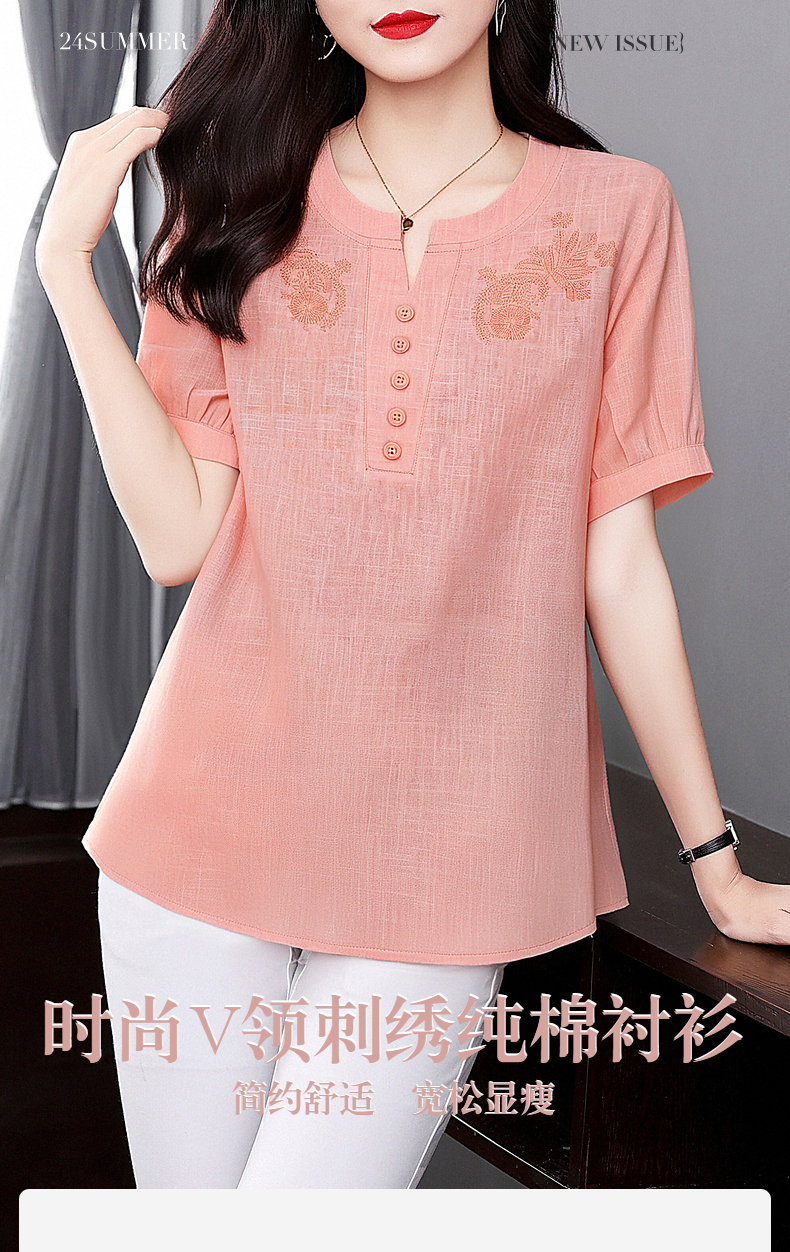 纯棉短袖衬衫女外穿2026年新款胖mm夏季宽松显瘦大码女装薄款上衣