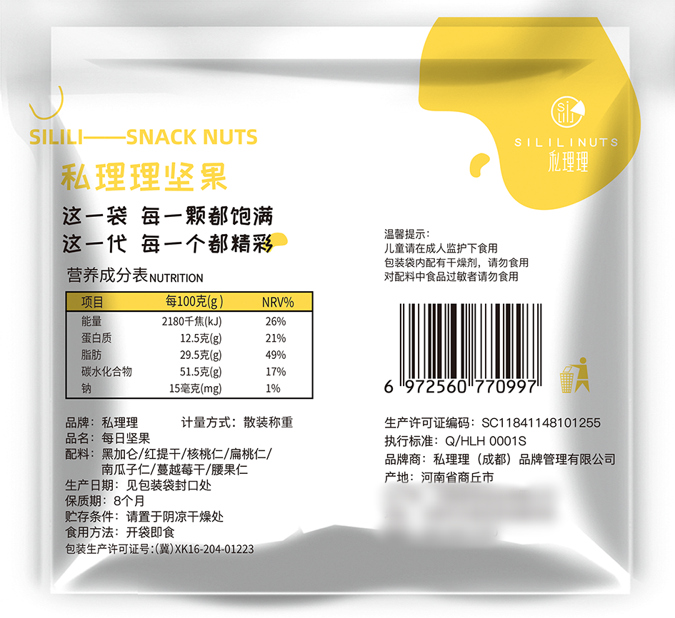 【商品名称】私理理每日坚果600g(20g*30袋)